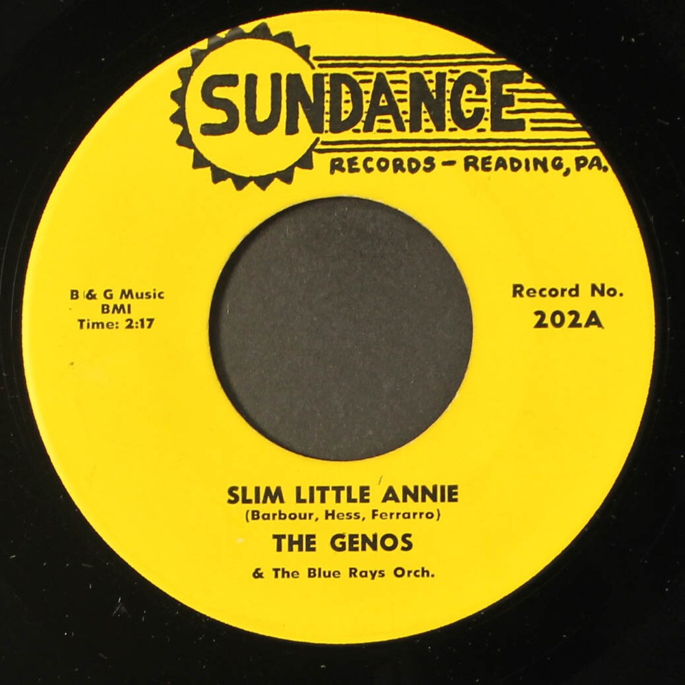 Item Details GENOS slim little annie / wishful dreaming Label: SUNDANCE 202 Format: 7" Single (45 RPM) Disc Condition: VG+ Genre: Rockabilly Price: $150 Shipping Info All orders are processed and shipped within 2 business days of receipt. We package and ship our vinyl records with the greatest care, using extra-thick packaging to ensure that your rare and collectible vinyl records arrive in pristine condition. Domestic Shipments USPS Priority Mail LP Only Shipments $15 for 1st LP + $2 each additional LP 45s, CDs and Cassettes $10.00 for 1st + $1 each additional Mixed Shipments $15 for 1st LP + $2 each additional LP / $1 each additional 45/CD/Cassette Oversized CDs, Cassettes, & 45s $14 base rate for 1st / $1 base rate each additional oversized + $1 each 45/CD/Cassette USPS Media Mail LP Only Shipments $7 for 1st LP + $1 each additional LP Mixed Shipments $7 for 1st LP + $1 each additional Oversized CDs, Cassettes, & 45s $6 base rate for 1st + $1 each 45/CD/Cassette Note: All domestic shipments are insured. International Shipments Air Mail LP Only Shipments $20 for 1st LP + $5 each additional LP 45 Only Shipments $18 for 1st 45 + $1 each additional 45 Mixed Shipments $20 for 1st LP + $5 each additional LP / $1 each additional Oversized CDs, Cassettes, & 45s $19 base rate for 1st / $1 each additional oversized + $1 each 45/CD/Cassette Note: Double LPs, box sets, etc. will incur additional shipping costs as indicated above. Record Grading Grade Explanation SS Still Sealed In factory-fresh condition. M Mint We don't use this grade. M- Mint Minus A near perfect, probably unplayed record. VG+ Very Good Plus Close to like new with only superficial signs of use that don't affect play. Only well cared for records will grade out to VG+. Will satisfy all but the most demanding collector. VG Very Good A used, reasonable copy. There will be obvious signs of wear and the possibility of light surface noise between tracks or during quiet passages, but still quite nice. VG- Very Good Minus Significant wear and marks and usually quite noticeable surface noise. G+ Good Plus In the record world, 'Good' is not good! From here on down (Fair, Poor), we're talking about beat-up records. * Unless noted, every record is an original issue for the label and catalog number. About Us Records By Mail offers one of the most comprehensive selections of vinyl LPs and 45s available anywhere. Housed in an 8,000 square foot warehouse that currently holds over 2 million records, Craig and his talented, dedicated staff serve music lovers in more than 60 countries. Records by Mail prides itself on maintaining one of the largest selections of rare vinyl records available anywhere—online or off. We are always looking to improve the quality of our service, and we update our database every day, so expect new titles and improvements with alarming frequency. Browse Categories Rock & Pop Soul Blues & R&B Oldies Jazz Funk Vocal Groups Rockabilly Country Vocalists Brazilian Punk/New Wave Easy Listening Soundtracks Reggae Black Gospel Rap/Hip-Hop Latin Our Guarantee We guarantee every item we sell to be as listed. We endeavor to provide superior service, but if we make an error, we'll make every effort to make it right either by refunding all costs involved, or adjusting the selling price to everyone's satisfaction.