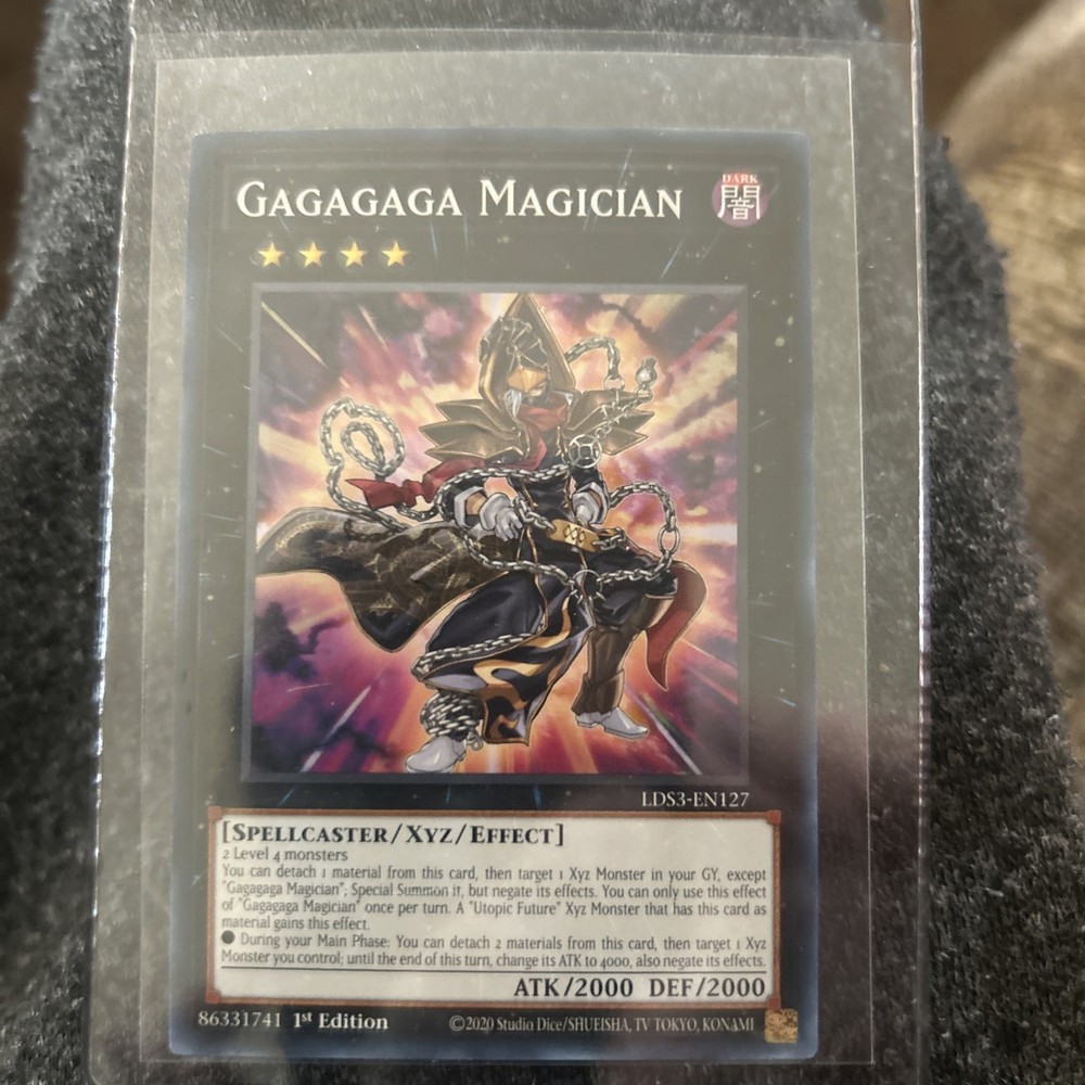 The Gagagaga Magician LDS3-EN127 card is a rare and highly sought-after collectible card from the Yu-Gi-Oh! TCG. This 1st edition card features a Dark attribute, 2000 attack and defense power, and belongs to the Legendary Duelists: Season 3 set. Manufactured by Konami, this Spellcaster creature card is in near mint condition or better, making it a valuable addition to any card collection. With its unique attributes and rarity, the Gagagaga Magician card is a must-have for fans and collectors of Yu-Gi-Oh! trading cards.