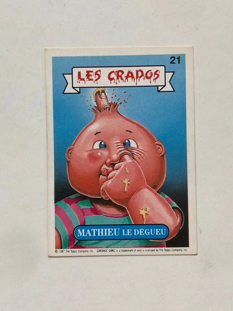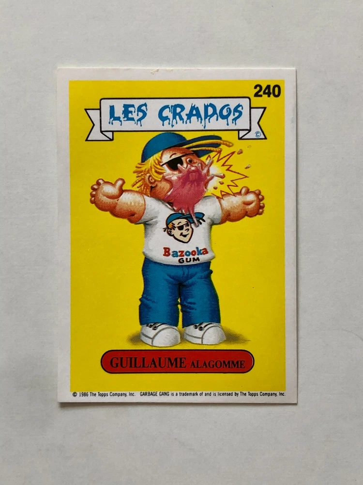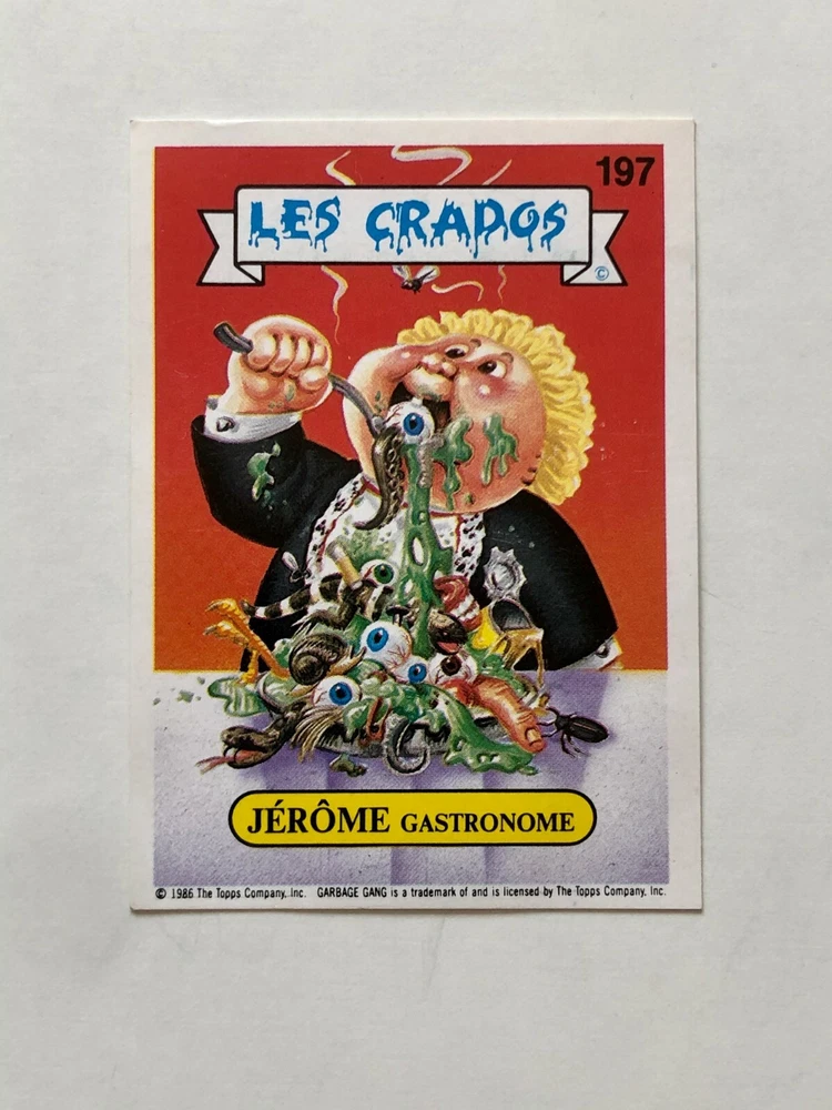 These French Les Crados cards are a must-have for any Garbage Pail Kids collector! The option to pick your own cards is fantastic, and the seller provides clear photos so you know exactly what you're getting. Shipping is reliable with tracking, and the seller is responsive to questions. A fun and nostalgic addition to any collection—highly recommended!