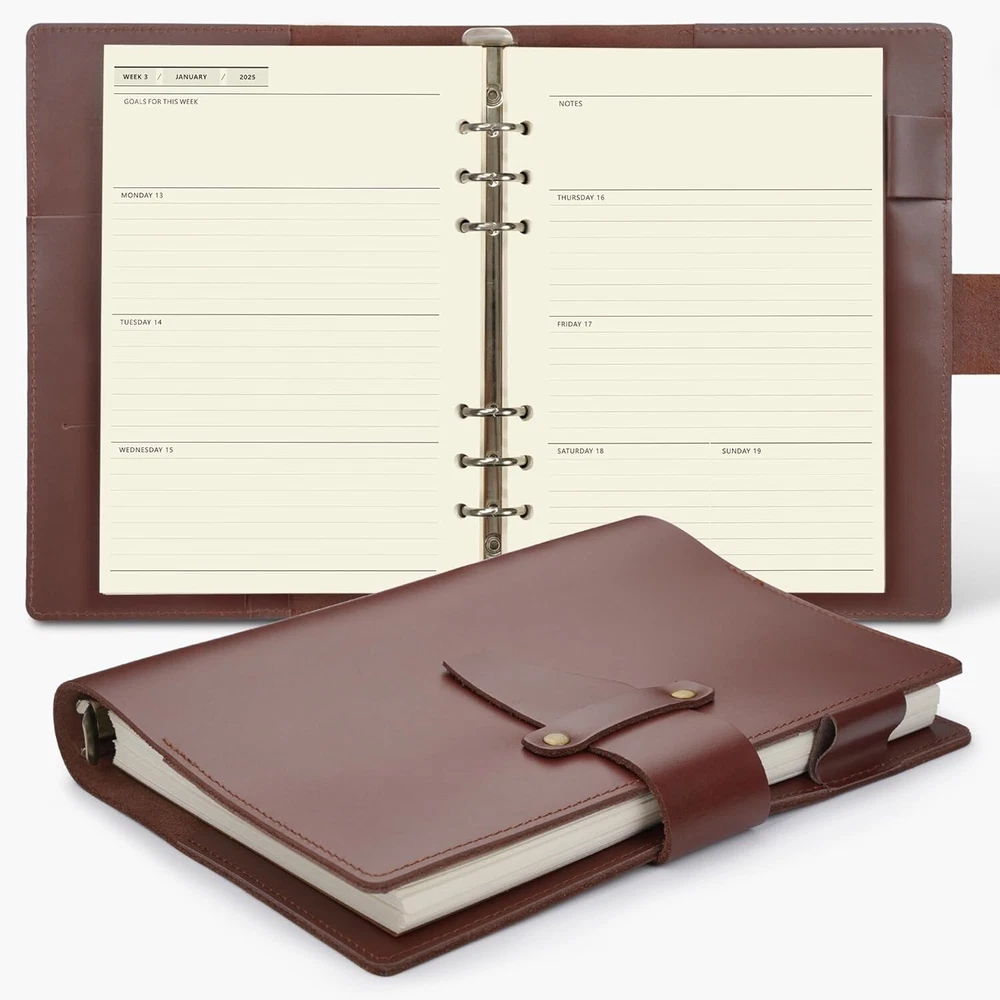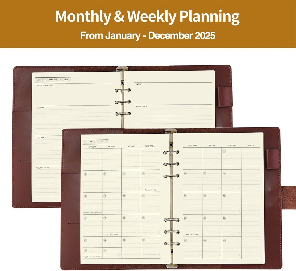 Genuine Leather A5 Planner 2025-2026, Refillable Weekly & Monthly Organizer ‹ › ‹ › ‹ › ‹ › ‹ › ‹ › ‹ › ‹ › ‹ › Genuine Leather A5 Planner 2025-2026 100% Genuine Leather: The rustic leather cover offers a soft, supple feel in your hands. Each planner is crafted from naturally tanned leather that ages beautifully, developing its own unique patina over time. Comprehensive 2025-2026 Planner: Designed for those who value organization, this planner runs from January 2025 to June 2026, featuring neatly marked weekly and monthly pages along with significant holidays. Thoughtfully Designed Inner Storage: Keep all your essentials organized with two spacious interior pockets, card slots, and a dedicated bills/notes compartment. Perfect for meetings or travel, it accommodates pens, business cards, receipts, and tickets effortlessly. Refillable Convenience: Utilize the sturdy stainless steel 0.75-inch round ring binder that accommodates up to 120 sheets. This planner allows for easy page removal, refill, or reordering, ensuring longevity for years to come. Premium Thick Paper: Featuring bleed-proof 100g/sm thick paper, this planner guarantees a superior writing experience, free from ink seepage and feathering. Why Choose This Planner? Elevate your planning experience with a touch of elegance and durability. The Genuine Leather A5 Planner is not merely an organizer, but a companion that stands the test of time—both in craft and functionality. Each turn of the page brings a moment of luxury, creating a planning experience that combines practicality with high-end design. Don’t delay in making this refined planner a staple in your life. Experience the allure of genuine leather and meticulous design by ordering yours today! Shipping Free & Fast Shipping - We offer free shipping to most of the USA with a normal delivery time of 3-10 businessdays. However, due to various situations, additional delivery time (up to 3 weeks) may be required for some items. Alternative Carriers - We may use alternative carriers (e.g. USPS, FedEx, UPS, etc.) to ensure your package arrives safely and on time. Due to the use of multiple carriers, we are unable to provide a tracking number automatically. Handling Time - Orders are processed and shipped within 1-5 business days of receiving cleared payment. Shipping Restrictions - Shipping to Alaska, Hawaii, Puerto Rico, Guam, and other US territories may incur shipping charges or delivery restrictions. Please contact us before ordering, or your order can be refunded/cancelled. State Restrictions - There may be restrictions based on your state of purchase. For example, certain items may not be shipped to California due to state regulations. Contact for Tracking Updates - If you require tracking updates or have any concerns about the delivery of your order, please feel free to contact us, and we will be happy to assist you. Return Please see our ebay return policy. We do not accept return on most products. This is to avoid customers mis-using ebay returns. All sales are final. Please be sure to check the return policy listed at the top of the listing. In rare cases, we may accept returns, if the buyer pays both ways shipping and 20% restocking fee. If you are un-sure of return policy of a particular item, please ask before buying. Payment We accept all major credit cards, PayPal, and Apple Pay for your convenience. Your payment information is secure and encrypted to ensure a safe and seamless transaction. Please complete your payment within 3 days of purchase to avoid any delays in shipping. Feedback Your feedback is extremely important to us. We strive to provide the best products and customer service possible. If you are satisfied with your purchase, please take a moment to leave us a positive review. If you have any concerns or issues with your order, please contact us before leaving negative feedback. We are committed to resolving any problems and ensuring your satisfaction. Contact Us If you have any questions or concerns, please feel free to reach out to our customer support team. You can contact us through the eBay messaging system. We are available Monday to Friday, 9:00 am to 5:00 pm EST, and we will do our best to respond to your inquiry within 24 hours. Buy it now and enjoy a pleasant shopping experience! UPC: Not Set Model: Not Set MPN: Not Set Unit Quantity: 1.39 Brand: Unbranded Type: Ring- Bound Planner Material: Genuine Leather Calendar Year: 2025 Size: A5 Format: Weekly/Monthly Country/Region of Manufacture: Not Set Unit Type: lb Personalize: Not Set