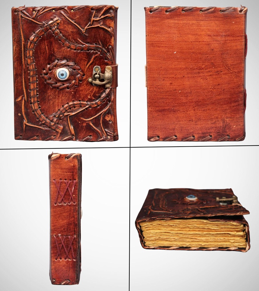Welcome To MADOSH (Brand: Madosh- Mad Over ShoppingTM) Step into a world where magic and mysticism intertwine with our Mystical Whispers Leather Diary. The enchanting Hocus Pocus theme, combined with the protective power of the Evil Eye, creates a unique and captivating canvas for your thoughts and dreams. Perfect for those who embrace the mystical arts, this diary is a versatile companion for journaling, spellcasting, or simply capturing the magic of your daily life. The Evil Eye emblem, a symbol of spiritual protection, adds an extra layer of enchantment to this diary. ORDER YOURS TODAY AND LET THE MAGIC UNFOLD! SIZE: Height: 7” (18 cm) | Length: 5” (13 cm) | Width: 1” (3 cm) SPECIFICATIONS: Genuine Leather Handmade Clasp closure Hocus pocus with evil eye Country of origin: India Pages: 200 NOTE: 100% Genuine leather diary. Color may slightly vary from pictures. Paper used in diary are 100% recycled cotton acid free paper.