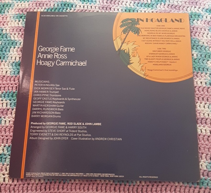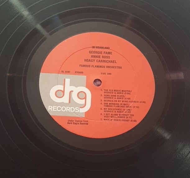 Georgie Fame Annie Ross Hoagy Carmichael In Hoagland LP 1982 DRG SL 5197 ex. Vinyl is in excellent condition with some minor light scratches and marks, glossy. Cover is in very good plus condition with no seam splits, some seam and corner wear, surface dirt and creasing.