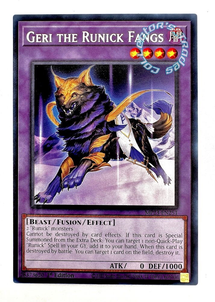 " Geri the Runick Fangs" MP23-EN251 Rare Yu-Gi-Oh! 25th Anniversary Tin: Dueling Heroes Mega Pack Near Mint - Level 4 - - Dark Monster - - "Geri the Runick Fangs " - - No.251 - - Rare - - 2023 Yu-Gi-Oh! - 25th Anniversary Tin: Dueling Heroes Mega Pack - - 1st Edition – - Beast/Fusion/Effect - - ATK/0|DEF/1000 - - 100% Authentic Yu-Gi-Oh! - - Near Mint - - Disclaimer- No replacements can or will be shipped in case of missing/broken package. If you have any questions, comments, or concerns, please feel free to contact me. Thank you for your interest in our listings and store and please come again!