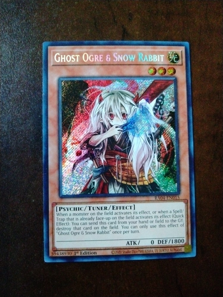 This Ghost Ogre & Snow Rabbit card is a must-have for any serious Yu-Gi-Oh! player. The 1st Edition Ultra Rare print from the Legendary Collection Kaiba set looks stunning, and its effect is incredibly useful for disrupting your opponent's plays. The Light attribute and Psychic type make it versatile in many decks, while the 0 ATK and 1800 DEF stats are balanced for its powerful effect. Konami nailed the design, and the card feels premium in your hands. A fantastic addition to any collection or competitive deck—highly recommended!