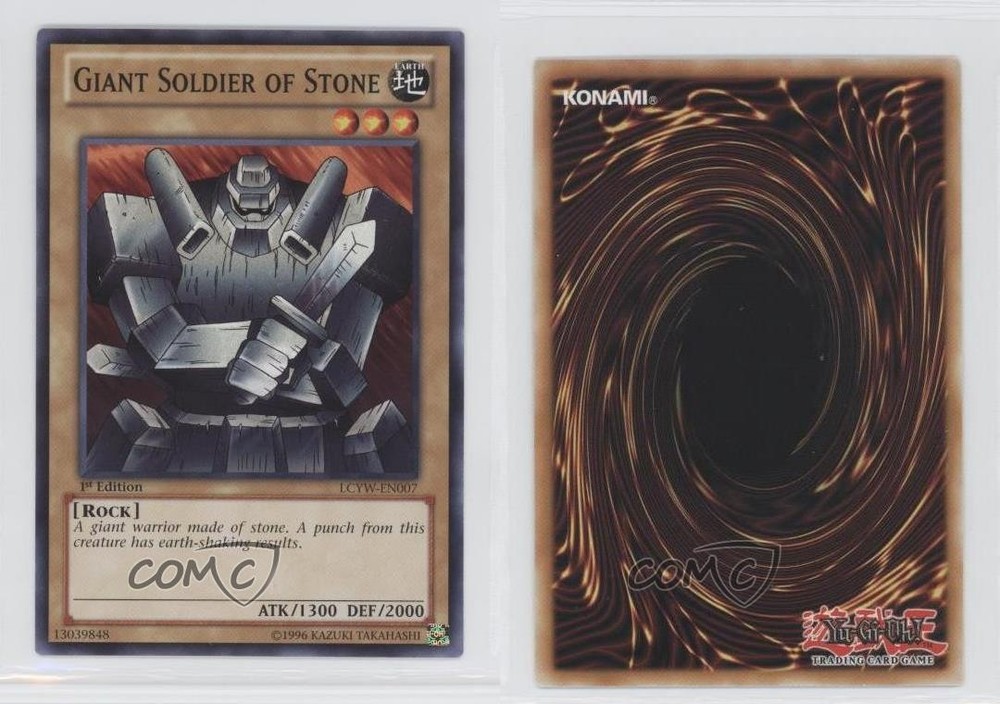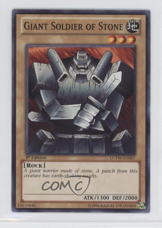 This card is a must-have for any Yu-Gi-Oh! collector! The 1st Edition Giant Soldier of Stone from LCYW-EN007 looks fantastic—great condition, crisp artwork, and a nostalgic throwback to classic duels. Perfect for deck-building or display, and COMC delivered it fast and safely. Highly recommend!