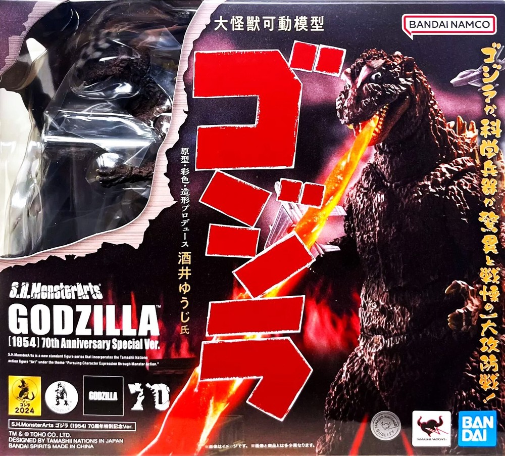 Godzilla 1954 Bandai Spirits S.H.MonsterArts Action Figure TAMASHII NATIONS Godzilla 1954 is coming to life in classic monochromatic form. Meticulously sculpted, the careful detail 54's rough skin seems to stand out even more with the simple color pallet that pays homage the original film. From Tamashii Nations. To commemorate the 70th anniversary of Godzilla, Godzilla (1954) is now available in its original poster coloring as an S.H.MonsterArts! The figure has been sculpted and colored by Yuuji Sakai, the leading Godzilla sculptor. The figure is painted in the image of the movie posters of the time, and the intricate details recreate the impression of the suit from that time. By using the interchangeable left and right wrist parts, it is possible to hold the included airplane. In addition, a radiation heat ray effect is included, so you can enjoy displaying it in the image of the poster. In addition, a Godzilla 70th Anniversary Logo Pedestal is included to commemorate the 70th anniversary of Godzilla. Celebrate this exciting time for Godzilla fans everywhere with a new (yet classic) addition to your collection! B0D5LHWS5T Brand new & in mint condition including the box. Please zoom in on the pictures to see condition details. Brand New. Case Fresh! Box is in mint to near mint condition. Thanks for shopping with Keith & Deb at We-R-Toys All of our items are from a clean, smoke free, pet free environment. We ship FAST and Pack with CARE