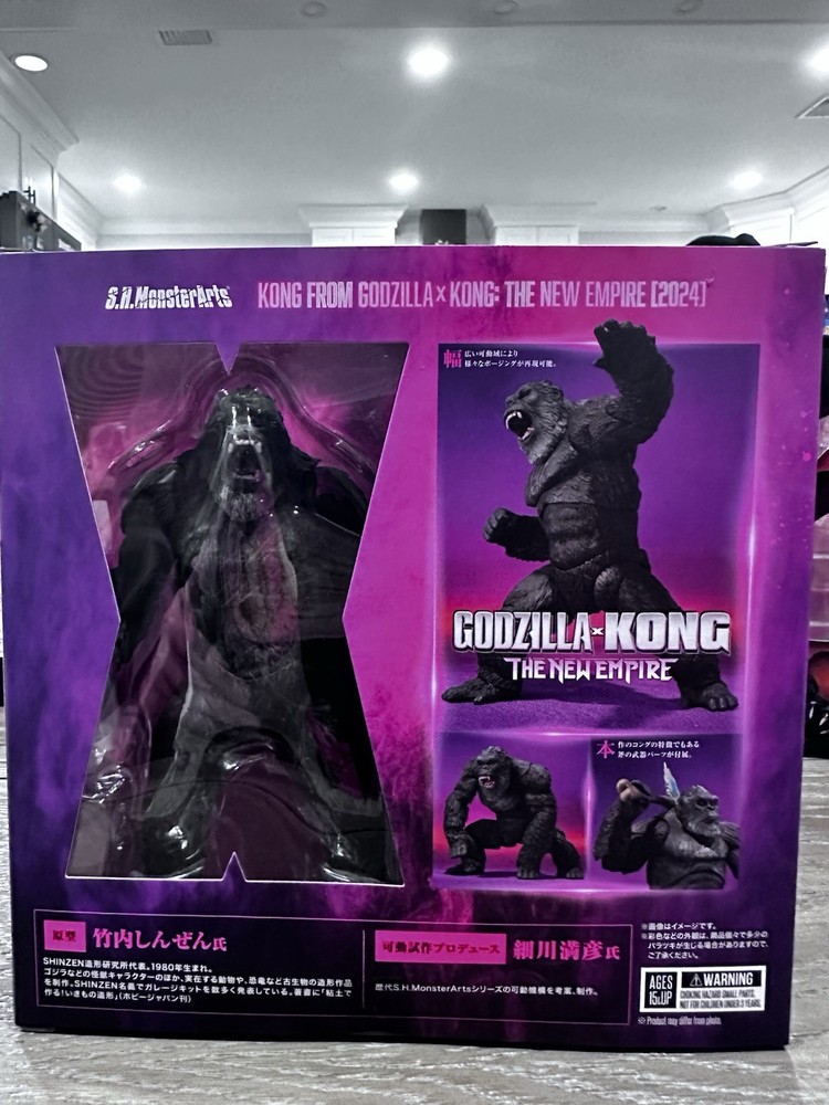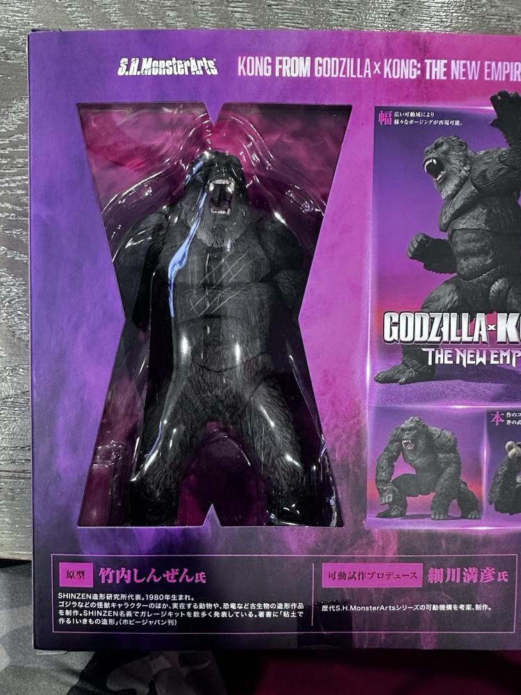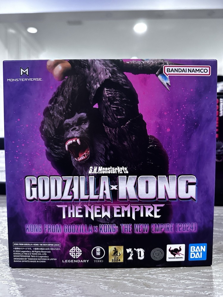 First production run exclusive! Sold out online Kong from "Godzilla x Kong: The New Empire" in the S.H.MonsterArts series. The figure was sculpted into three-dimensional form by animal sculptor Shinzen Takeuchi. Mitsuhiko Hosokawa, who created the posable mechanisms used by successive generations of S.H.MonsterArts products, has made it possible to move the figure without compromising proportions. Product Features: - 5.7 inches (14.5cm) - Made of ABS and PVC - From the Godzilla x Kong: The New Empire film - Part of the S.H.MonsterArts series Box Contents: - Kong figure - Axe - 3 Pairs of interchangeable hands - Interchangeable head part