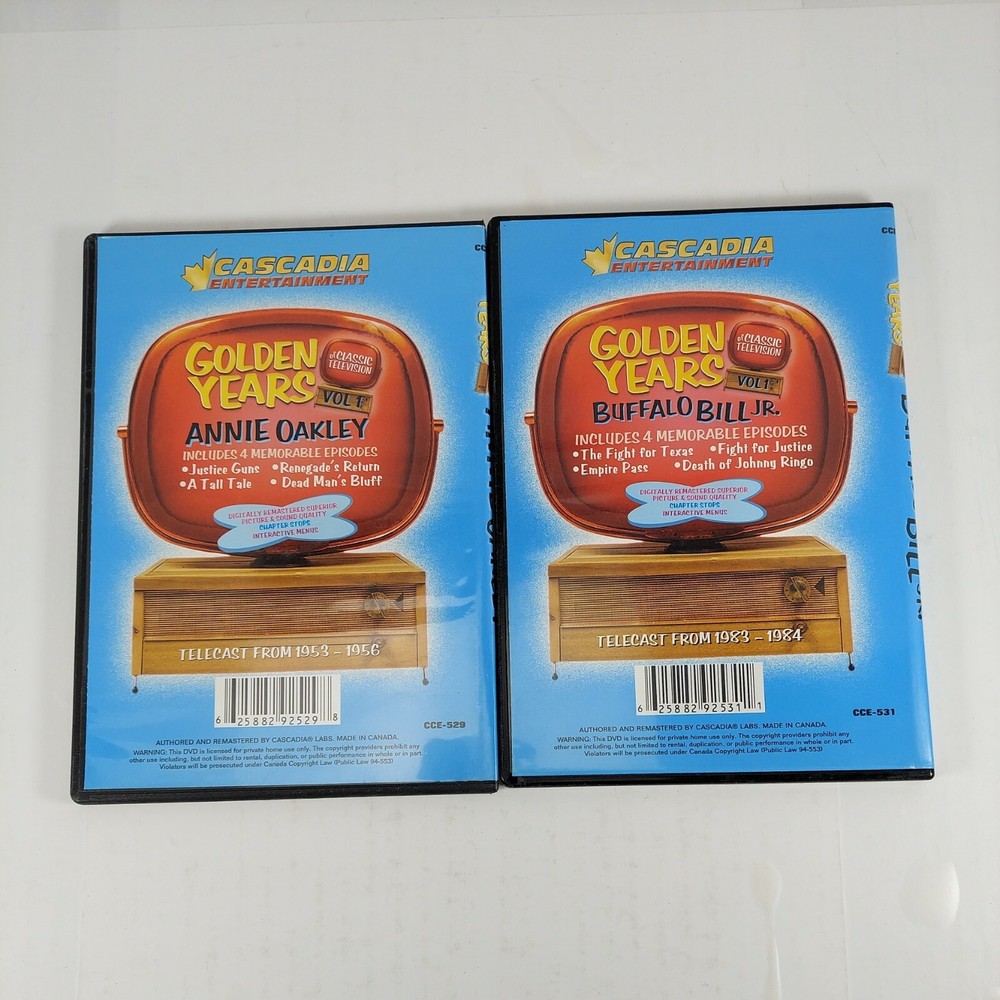 Golden Years of Classic Television DVD Lot Annie Oakley & Buffalo Bill Jr. Slimline DVD cases, condition is Very Good, Shipped with USPS Media Mail...