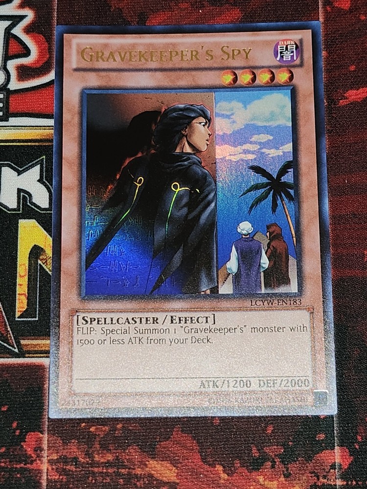 Gravekeeper's Spy is an Ultra Rare Effect Monster card from the Legendary Collection 3: Yugi's World set in the Yu-Gi-Oh! TCG. It is a Spellcaster type creature with 1200 Attack and 2000 Defense. The card is in English and has the card number LCYW-EN183. It is manufactured by Konami and is part of the unlimited edition of the set. We understand that the condition of the card is important to collectors, but rest assured that this card has been sleaved and protected. Add this powerful card to your collection today and show off your Yu-Gi-Oh! TCG prowess. Please note that this item is sold as is, with the condition shown in photos and description. We invite you to browse our full range of Yu-Gi-Oh! cards and add this rare gem to your collection today.