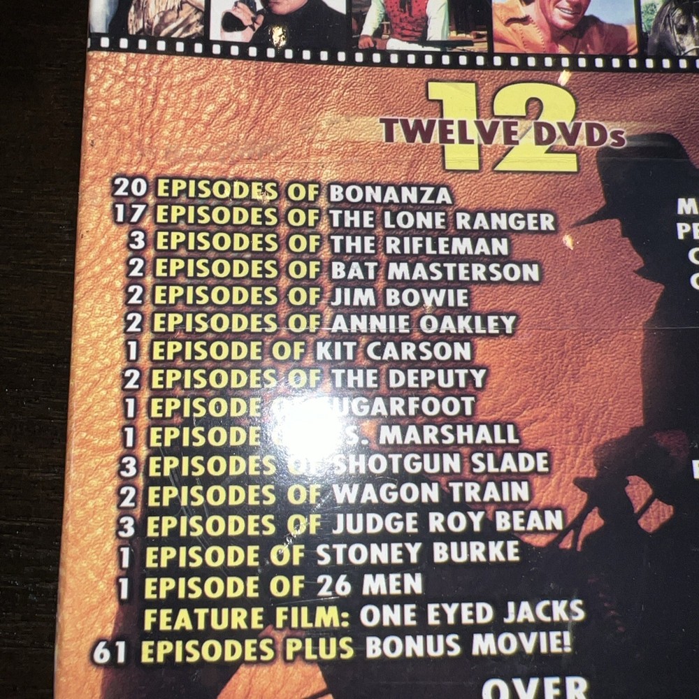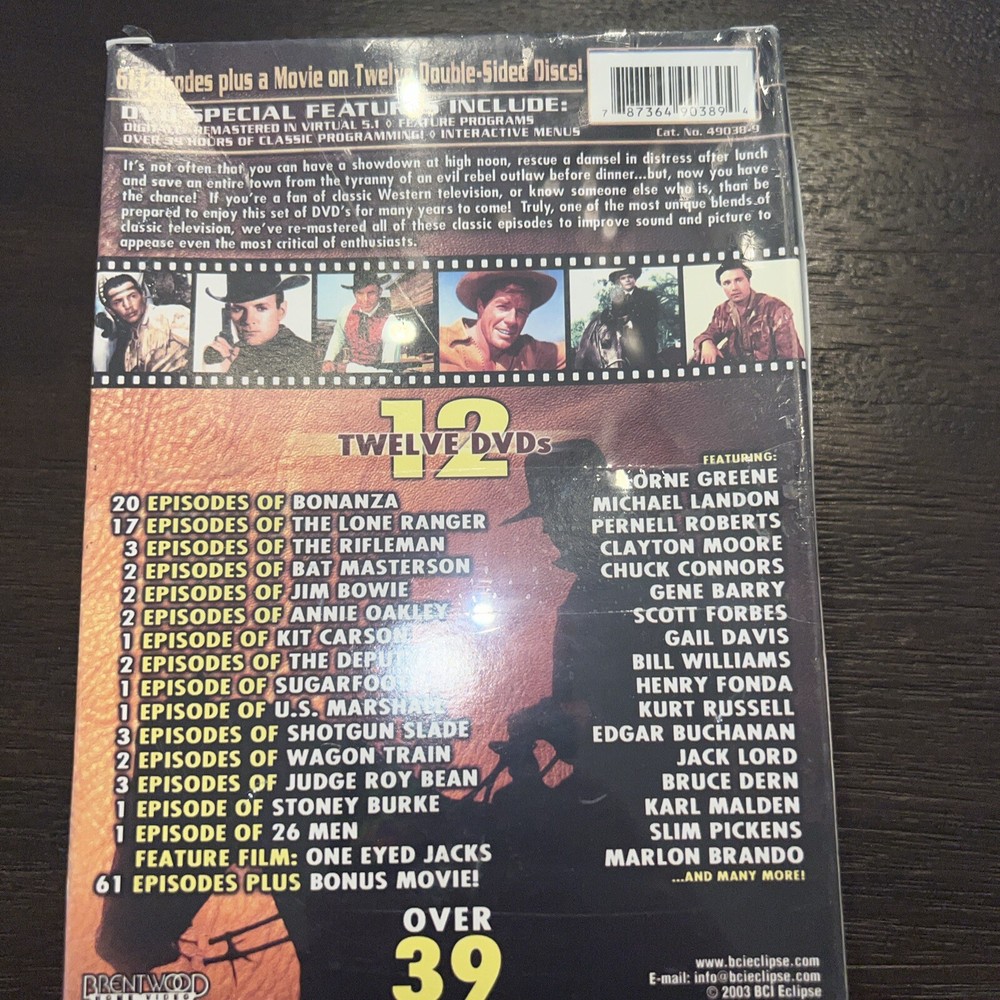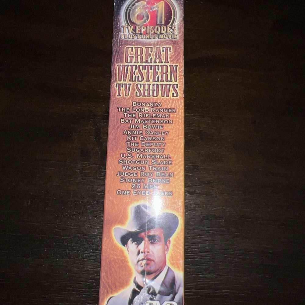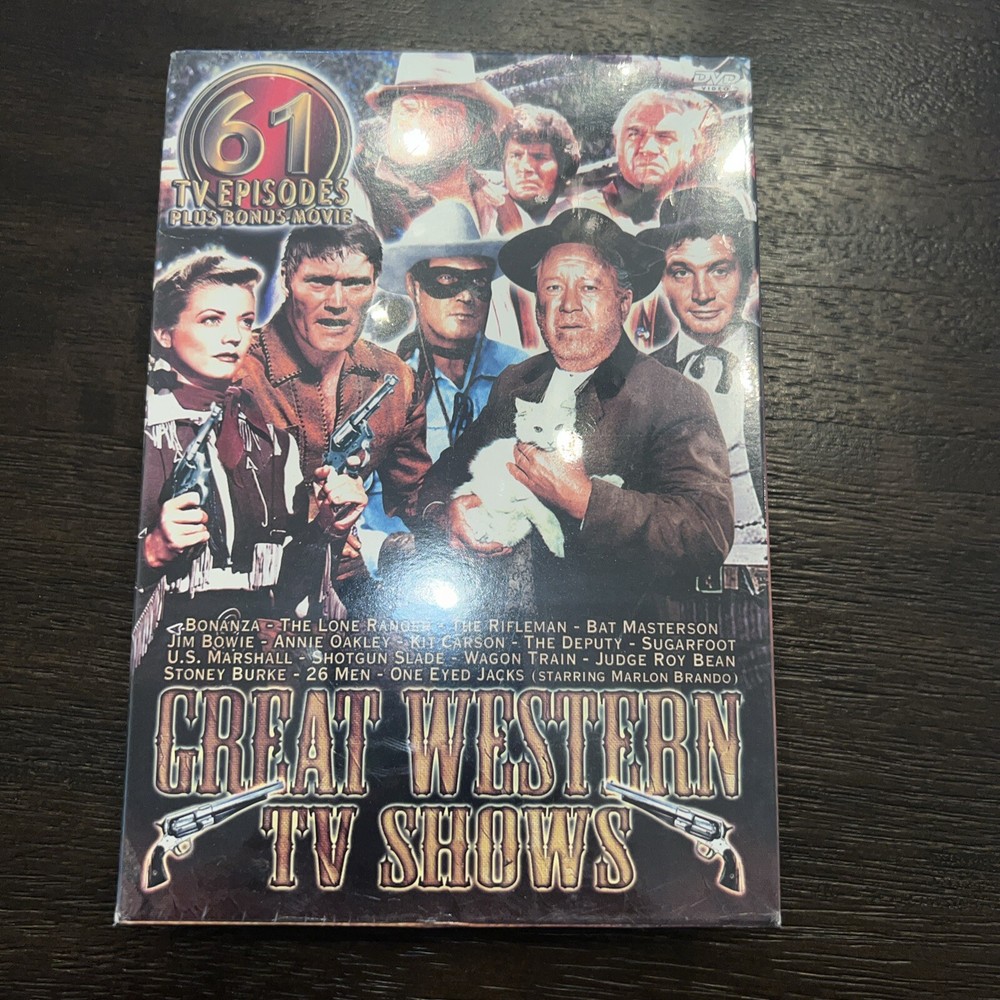 Get ready for a marathon of classic western TV shows with the Great Western TV Shows DVD set. This 12-disc set features Rifleman, Annie Oakley, and Bonanza, among others, with over 39 hours of black and white, full-screen entertainment. Each disc is double-sided, so you'll never run out of episodes to watch. This DVD set is perfect for fans of westerns, with its PG rating and English language. The DVD's region code is 4 (AU, NZ, Latin America...), making it accessible to a wide audience. The Great Western TV Shows set is a must-have for anyone who loves classic TV and wants to add some timeless entertainment to their DVD collection. Db001-34