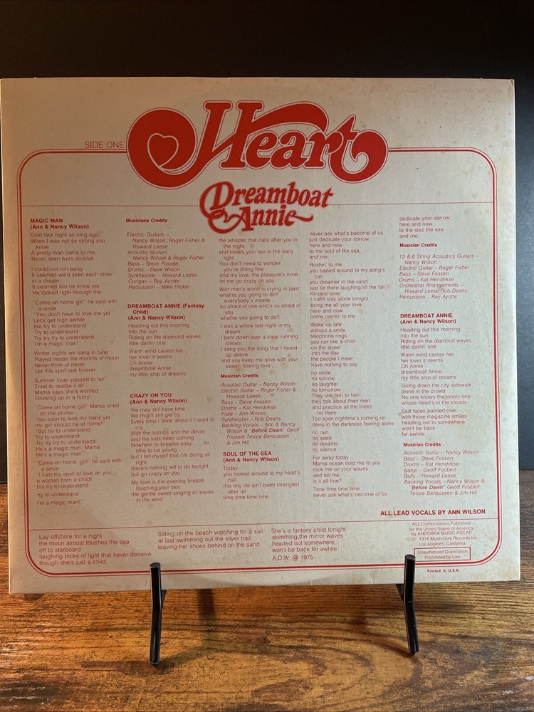 HEART Dreamboat Annie LP Mushroom Records 1976. Condition is Used. Shipped with USPS Media Mail....