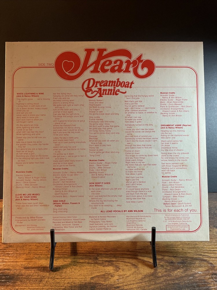 HEART Dreamboat Annie LP Mushroom Records 1976. Condition is Used. Shipped with USPS Media Mail.