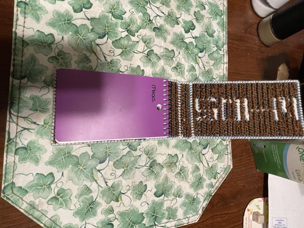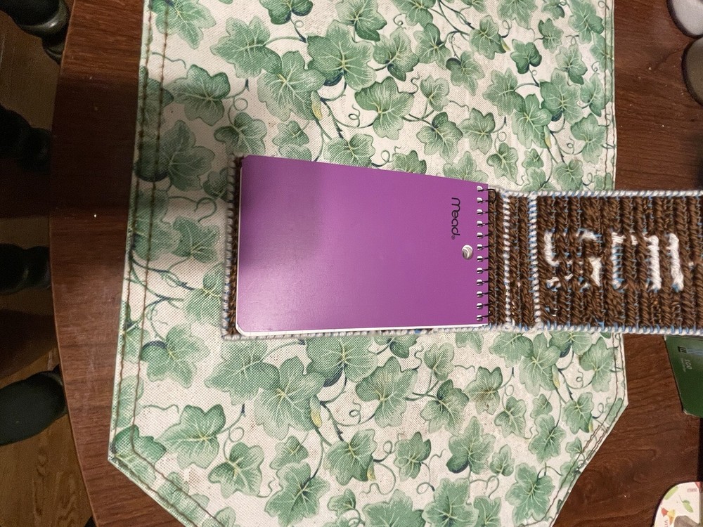 This Is a hand. Small. Note books It’s. Small Enough. So. You. Can. Leave. Your self A. Note Or. Leave. Someone. Else. A. Note. You Can This. Notebook. In. Many ways. This notebook was made very easily like two pieces, cat plastic canvas Sew. Together With. Yarn. Sew. The. Third on Place. It. Inside. Of. The back. Peace. Slide. A. Notebook. Inside
