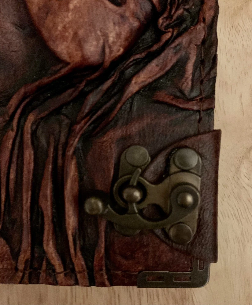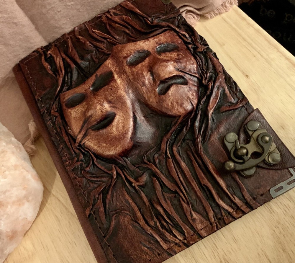 This handcrafted leather journal is absolutely stunning! The embossed theater faces add such a unique, artistic touch, and the vintage brown leather feels luxurious. The chamois paper is smooth and perfect for writing or sketching. It’s the ideal size—compact yet spacious enough for daily use. A beautiful, high-quality piece that makes journaling feel special!