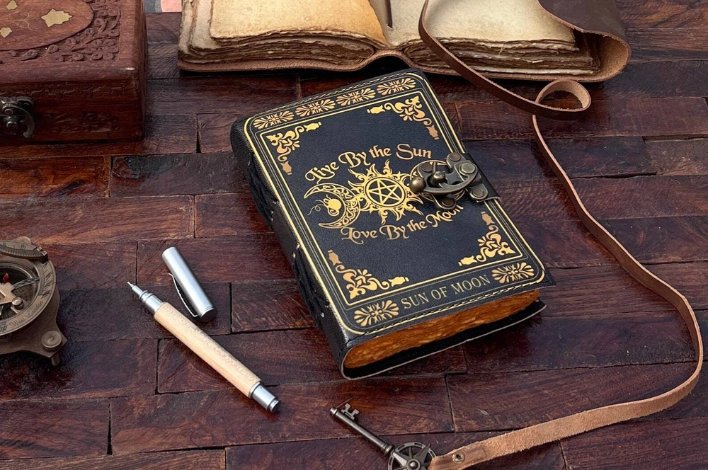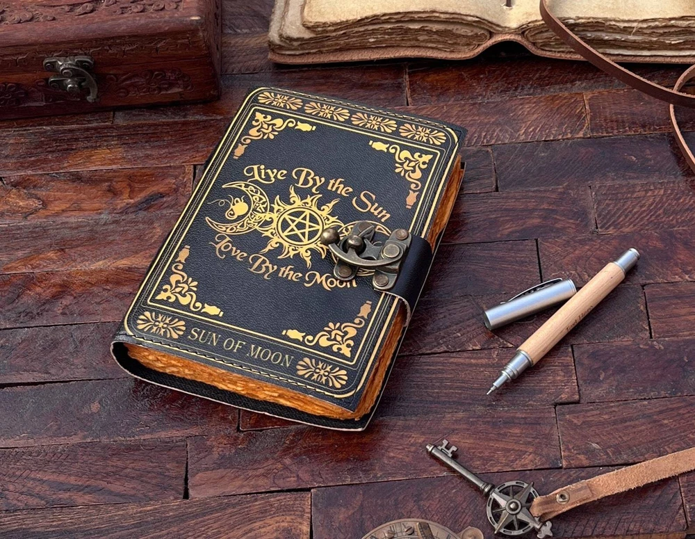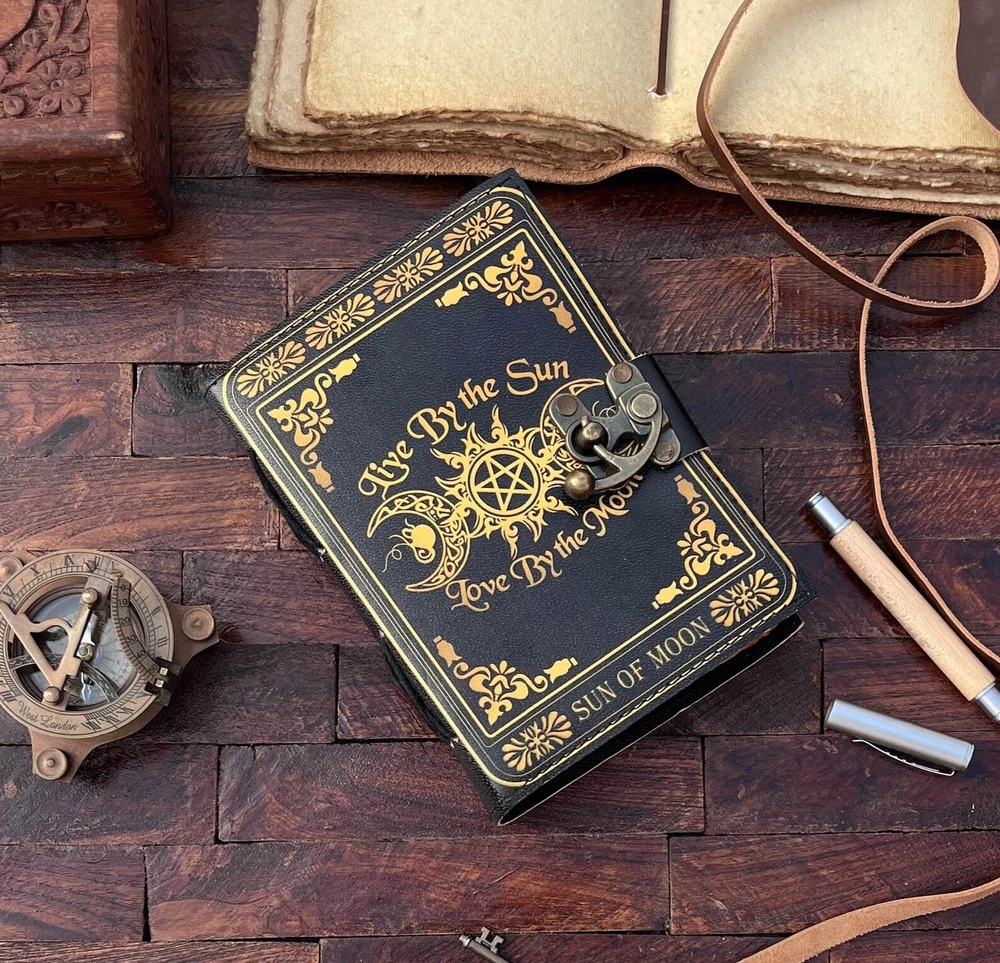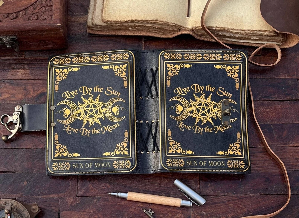 This handmade diary is perfect for anyone who loves to write and create. The intricate design features a celestial triple moon and pentagram, making it a unique and stylish addition to any collection. The leather cover is durable and adds a touch of elegance to the diary. With special attributes such as being a 1st edition, this diary is truly one-of-a-kind. It was crafted in India and features blank pages for the user to fill with their thoughts, spells, or plans. Whether used as a planner or a journal, this diary is a great choice for anyone looking for a special and unique item. PAYONEER I accept Payoneer. COUNTRY: Shipping Worldwide from INDIA TYPE: Standard Int'l Flat Rate Shipping OTHER: I usually ship within 24 hours after receipt of payment. The delivery time from Ukraine: 10-25 days. Item will be qualitatively packed. Always leave a positive feedback to good ebayers. 30-Day return policy : I guarantee you complete satisfaction with all my high quality products. If you receive an item you did not order or if an item you ordered is received damaged or defective, I will refund you the price you paid for it or replace it with identical one.