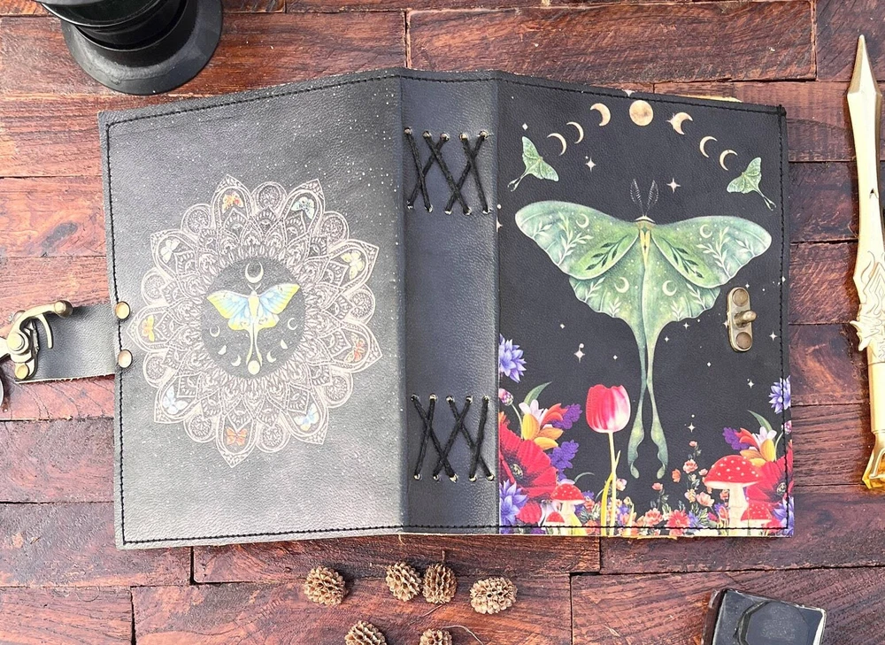 This handmade journal is sure to enchant anyone who lays their eyes on it. The cover is made of high-quality leather and features a beautiful Luna Moth design, making it a perfect gift for both men and women. The blank pages inside can be used for spells, journaling, or daily notes, and the compact size makes it ideal for carrying with you wherever you go. Crafted in India, this journal is a unique piece with special attributes such as being a 1st edition. It is a versatile item that can be used for personal or professional purposes. Whether you're looking for a new planner or a diary to capture your thoughts and emotions, this enchanting Luna Moth journal is perfect for you. PAYONEER I accept Payoneer. COUNTRY: Shipping Worldwide from INDIA TYPE: Standard Int'l Flat Rate Shipping OTHER: I usually ship within 24 hours after receipt of payment. The delivery time from Ukraine: 10-25 days. Item will be qualitatively packed. Always leave a positive feedback to good ebayers. 30-Day return policy : I guarantee you complete satisfaction with all my high quality products. If you receive an item you did not order or if an item you ordered is received damaged or defective, I will refund you the price you paid for it or replace it with identical one.