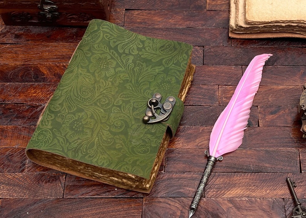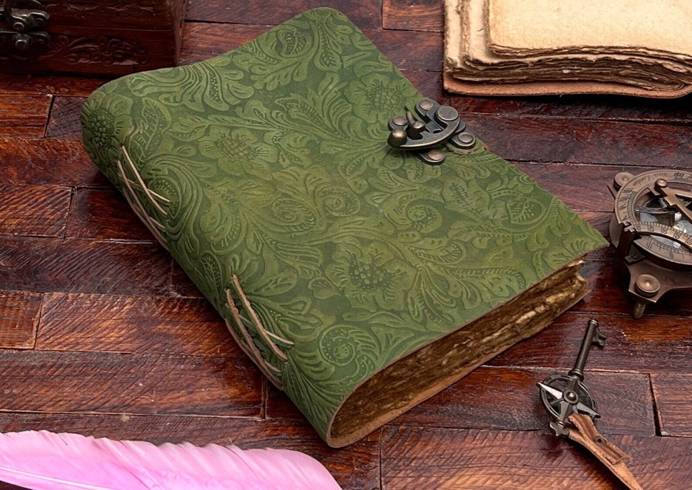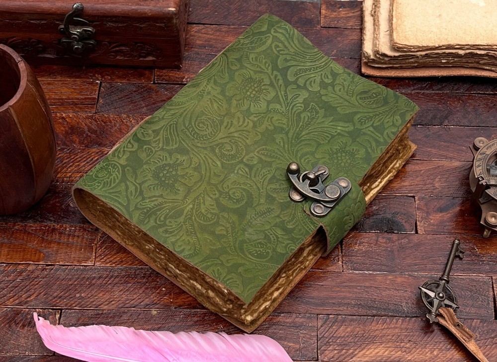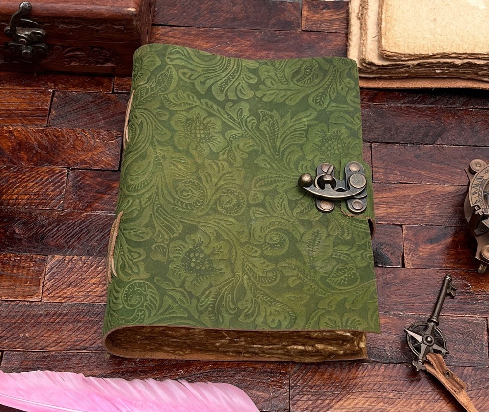 Handmade Green Floral Leather Journal Diary for Adults Unisex
