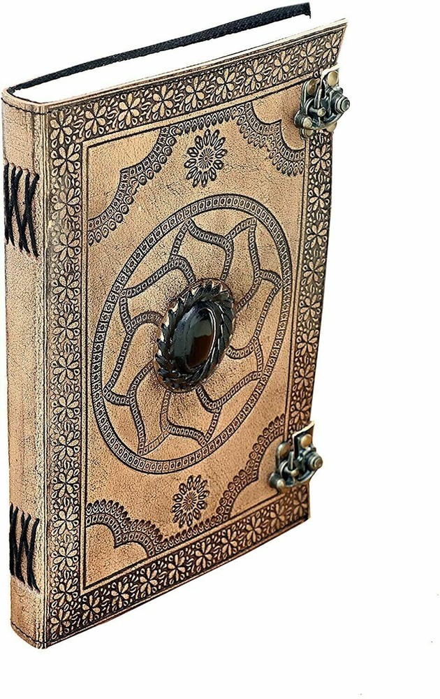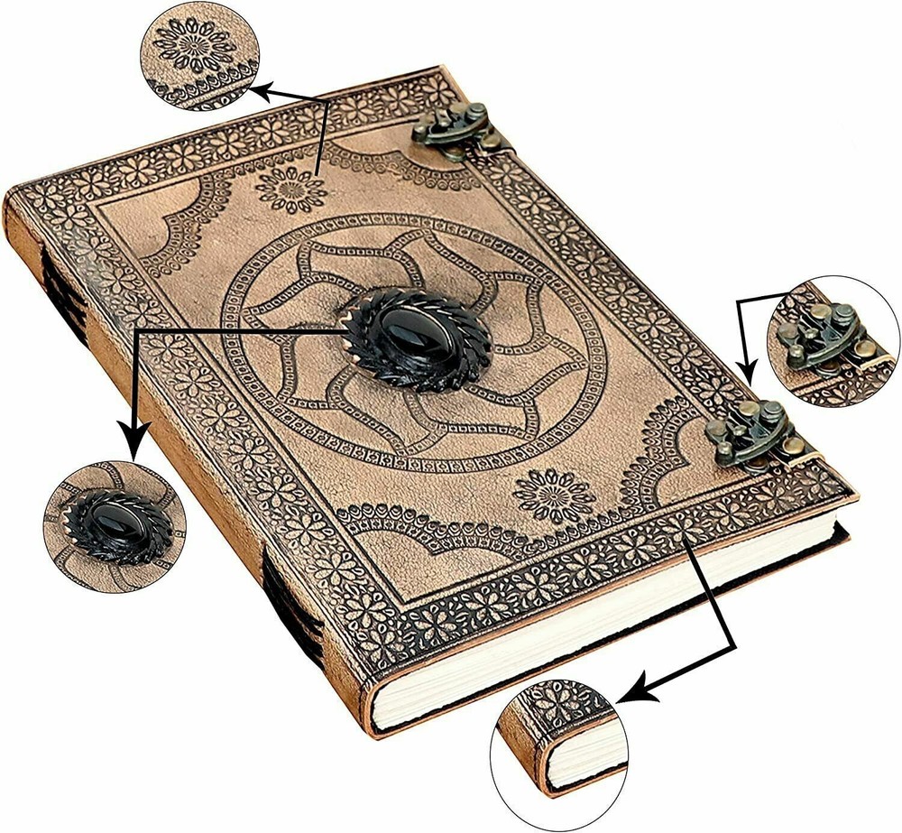 Handmade Leather Journal Diary Embossed Vintage Black Stone Leather Journal | Antique Journal With Lock ✔ BEAUTIFULLY CRAFTED & UNIQUE: Soft & Supple Black Genuine Leather. A lovely vintage style and feel with a gorgeous, real leather scent. Being hand-made, no two are quite the same - a special keepsake for your thoughts, plans & ideas ✔ GENUINE LEATHER: Made from Full grain leather this book is hand crafted by artisans working with leather for decades ✔ EARTH-FRIENDLY: 100 sheets / 200 pages, hand-crafted with recycled cotton which is acid free & tree free - environmentally kind! ✔ PERFECT SIZE 10 inch by 7 inch MANY USES: 1.5 inch thickness, easy for handwriting, drawing or sketching and compact for carrying in your bag. Ideal for an alternative Artists Sketchbooks, Girls Diaries, Travelling, Teen Journals, Poetry Work, Food Planner, Scrapbook and Christian Bible Journaling ✔ Perfect size to carry in your bag , preserve those special ideas/ thoughts with this beautiful handmade journal.