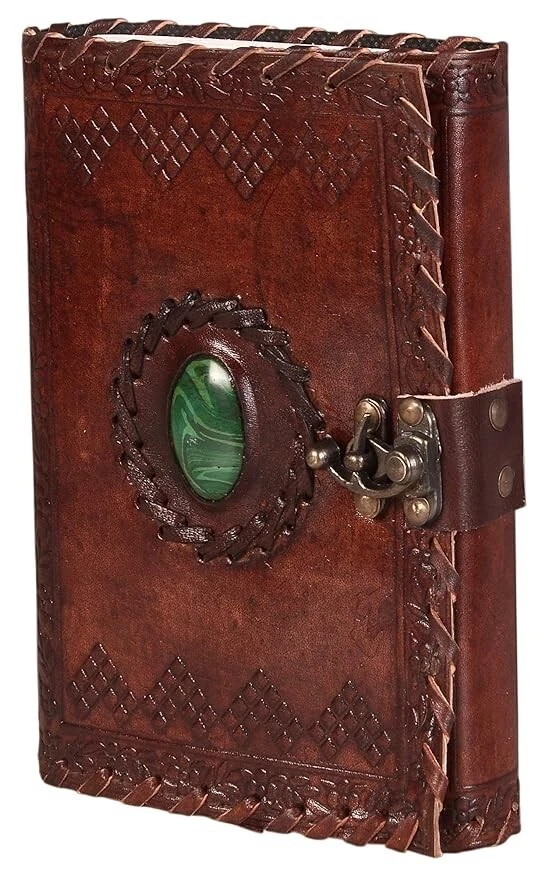 CAVALO - Be Unique Leather Diary with Antique Green Stone Handmade Leather Bound Diary for Men and Women Unlined 5×7 inches Size 200 Pages Travel Diary with Antique Lock Best Choice of Gift for any occasion. (Green Stone) About this item Brand CAVALO - Be Unique Colour Grey(Brown) Theme Plain Sheet Size 4*8 Inches Pages 200 Pages About this item Beautiful & Aesthetic: Handmade leather journal - use it as scrapbook or sketch book to draw, stick travel photos to make collage, practice Calligraphy using fountain pen, paint your dream using a paint brush and do not worry as we use no-bleed through thick craft pages. Best hand-crafted gift for an Art lover. Carry in style and get compliments wherever you may go, Compliments Guaranteed Write Travel Stories: Save the beautiful moments shared with your loved ones travelling around your favorite places & experience the Nostalgia when you read them later in time. This daily diary can be an easy conversation starter in your new college or university. It is compact sized so you can write wherever you are and can easily fit into a purse or backpack, can carry to your next vacation trip. Used by Writers & deep thinkers: Save your creative ideas whenever you need, draw symbols or use shorthand for speed writing or just use it in Bullet Journals to plan and organize on a daily basis. Make your daily to-do’s, monthly shopping list, quick notes, your BuJo is customized to your life Add Creativity: Use different color pens, pencil, wax color, fountain pen, watercolor, roller gel pen, highlighter. We use no-bleeding unlined smooth cotton craft environment friendly paper, with a vintage look which can be used by scribblers, amateur poets, writers & professional artists. Write your very own homebrew recipes This cute & vintage aesthetic notebook/journal/diary/stationary or aesthetic journal is a unique gift to your best friend, man, women, girl, boy, boss as birthday gift, anniversary gift, women’s day, father’s day gift. It can be present as slam book for memories, autograph book, personal diary, popit diary secret diary, small and mini antique diary to your mother, father, brother, sister or lover. it feels like harry potter gift. Best choice of gift on any occasion. Free Shipping....**local custom duty or taxes (if any) will bare by customer only. if buyer declined to pay there will be no return, no refund and no cancellation of order. Feel free to ask about the items.