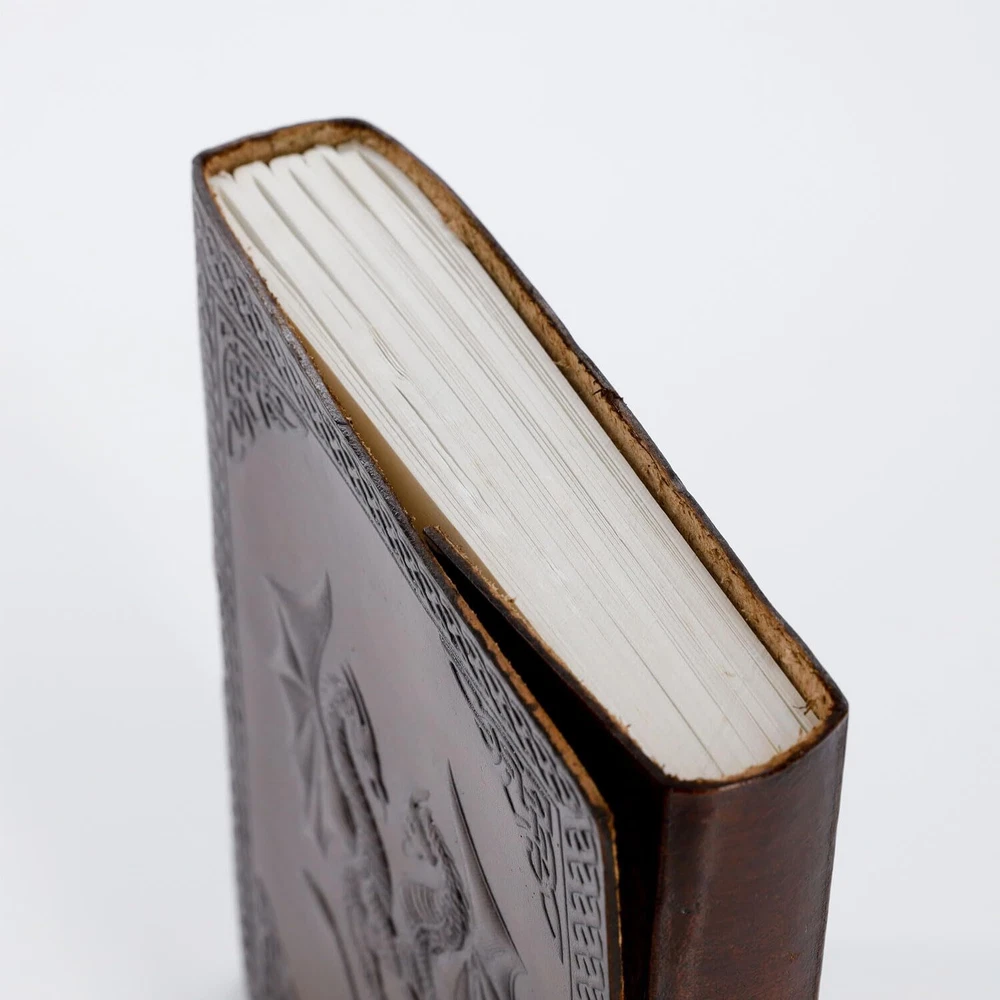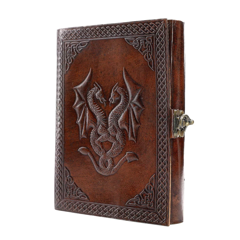 Handmade Leather Double Dragon Journal/Writing Notebook Diary/Bound Daily Notepad for Men & Women Unlined Paper Medium, Writing pad for Artist, Sketch HANDCRAFTED FROM TOP GRAIN BUFFALO LEATHER: Each of our journals is handmade by skilled artisans using PREMIUM WATER BUFFALO LEATHER AND RECYCLED COTTON PAPER and features a BEAUTIFULLY CRAFTED DESIGN, Which Makes it perfect for use as a LEATHER NOTEBOOK, SKETCHBOOK, NOTEPAD, DIARY and JOURNAL. PREMIUM MATERIALS, GREAT SIZE: Unlike an average journal that may be filled with low-quality paper that degrades the writing experience. Our Leather journals are made with Premium MATERIALS, Like Top Grain Water Buffalo Leather and PREMIUM 125 gsm EARTH-FRIENDLY PAPER that is perfect to write on. NO BLEED-THROUGH PAGES: BALL PEN AND SLOW FOUNTAIN PEN FRIENDLY. The journal measures 8 inches in height x 6 inches width x 1.5-inch Thickness TELL YOUR STORY: We designed this classic leather journal for men and women as a time capsule for your thoughts. Capture your important memories, accomplishments, life-changing moments and evolving dreams as a keepsake to reflect upon in years to come. PERFECT GIFT AND COLOR OPTIONS FOR EVERY INDIVIDUAL: Makes an Awesome Anniversary, Valentine's, Christmas, and Birthday Gift. Great gift for women and men Artists, and travellers. AVAILABLE IN 2 colours and 2 sizes. OUR 1-YEAR : Your purchase is risk-free if by any chance your handmade journal arrives damaged or you find any faults with the craftsmanship, Kindly let us know directly and we will send you a free or a full within a year of purchase Komal’s Passion Leather is a small family business based in Chicago, Illinois. It was born out of a young girl’s passion for creating exquisite handmade leather articles. It all started in a small town called Lynchburg Tennessee, Where Komal, A Leather Artist, Started giving shapes to her creativity and started offering her creations to clients through shelves on Coffee shops, Gas stations and supermarkets. In a couple of years, The customer feedback motivated her to do better and go bigger and the growing demand for her product made her reach out to other artists like her from around the world. Moving to Chicago in 2012 gave wings to her dream and her co-workers in Bank of America, Inspired her to go online and sell her products to a wider range of clients based all across the United States. Past 5 Years, Our businesses Komal’s Passion Leather now support and import from other handicraft artists and offer a much wider range of handmade leather articles to clients across the globe. But the fundamentals are still the same, Offering Handmade exclusive quality. Shipping We ship within Three business days of payment, usually sooner. Some delivery times are longer than normal due to increased demand. We use a selection of shipping services such as UPS, FedEx, USPS etc. We only ship to the lower 48 states, no APO/FPO addresses or PO Boxes allowed. Local pickups and combined shipping options are not provided at this time. Return You can return a product for up to 30 days from the date you purchased it. Any product you return must be in the same condition you received it and in the original packaging. Please keep the receipt. Payment We accept payment by any of the following methods: PayPal Please pay as soon as possible after winning an auction, as that will allow us to post your item to you sooner! Feedback Customer satisfaction is very important to us. If you have any problem with your order, please contact us and we will do our best to make you satisfied. Contact Us If you have any queries, please contact us via ebay. We usually respond within 24 hours on weekdays. Thank you for shopping at our store.