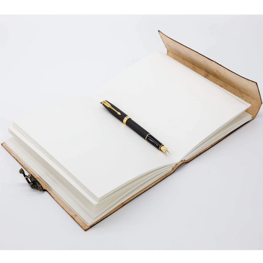 Handmade Leather Double Dragon Journal/Writing Notebook Diary/Bound Daily Notepad for Men & Women Unlined Paper Medium, Writing pad for Artist, Sketch ✓ Free 60 Day Returns ✓ Free Express Shipping Description: Features: HANDCRAFTED FROM TOP GRAIN BUFFALO LEATHER: Each of our journals is handmade by skilled artisans using PREMIUM WATER BUFFALO LEATHER AND RECYCLED COTTON PAPER and features a BEAUTIFULLY CRAFTED DESIGN, Which Makes it perfect for use as a LEATHER NOTEBOOK, SKETCHBOOK, NOTEPAD, DIARY and JOURNAL. PREMIUM MATERIALS, GREAT SIZE: Unlike an average journal that may be filled with low-quality paper that degrades the writing experience. Our Leather journals are made with Premium MATERIALS, Like Top Grain Water Buffalo Leather and PREMIUM 125 gsm EARTH-FRIENDLY PAPER that is perfect to write on. NO BLEED THROUGH PAGES: BALL PEN AND SLOW FOUNTAIN PEN FRIENDLY. The journal measures 7 inches height x 5 inches width x 1.5-inch Thickness. TELL YOUR STORY: We designed this classic leather journal for men and women as a time capsule for your thoughts. Capture your important memories, accomplishments, life-changing moments and evolving dreams as a keepsake to reflect upon in years to come. PERFECT GIFT AND COLOR OPTIONS FOR EVERY INDIVIDUAL: Makes an Awesome Anniversary, Valentine, Christmas, Birthday Gift. Great gift for women and men, Artists, and travellers. AVAILABLE IN two colours and 2 sizes. OUR 1 YEAR REPLACEMENT WARRANTY: Your purchase is risk-free if by any chance your handmade journal arrives damaged or you find any faults with the craftsmanship, Kindly let us know directly and we will send you a free replacement or a full refund within a year of purchase. Product Details: Brand: Komal's Passion Leather Color: Brown Theme: Book Cover Material: Leather Style: Classic Ruling Type: Plain Special Feature: Leather Product Dimensions: 7"L x 5"W x 1.5"Th Number of Items: 1 Binding: Office Product Brand: Komal's Passion Leather Item Weight: 14.8 ounces Product Dimensions: 7 x 5 x 1.5 inches Color: Brown Cover Material: Leather Material Type: leather Number of Items: 1 Size: 7 x 5 Ruling: Plain Manufacturer Part Number: A Date First Available: January 9, 2021