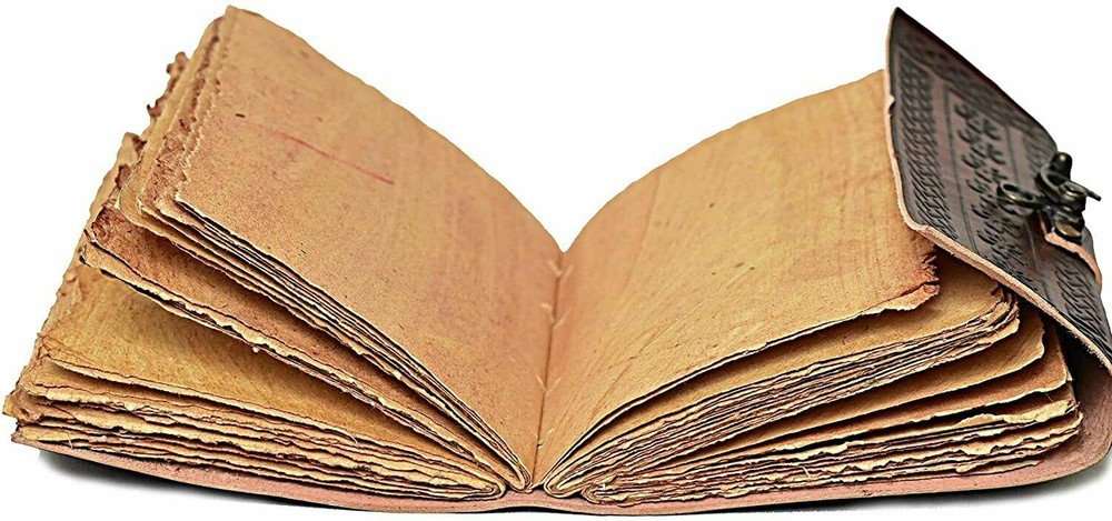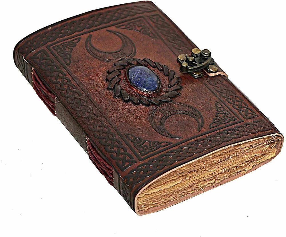 About this item QUALITY MEDIEVAL HANDMADE VINTAGE PAPER - Ancient looking rustic cotton paper combined with the beauty of distressed leather, hand-stitched by Artisans, creates a keepsake you will cherish forever. Makes a great gift for the men, women, and Wiccans in your life! 3 MOON EMBOSS DESIGN - Perfectly embossed with the 3 Moon designs, this journal makes a thoughtful gift to anyone of different cultures. The moon symbolizes firmness, strength, and power while the moon represents calmness, beauty, and nurturing. Unlined DECKLE EDE paper - 240 pages of thick, natural 115GSM craft paper. Perfect for use with many pen types. Thick paper prevents bleed through. Pages are Unlined with 5.5mm spacing. Note: Deckle Edge page count is 240 pages, 120 sheets.