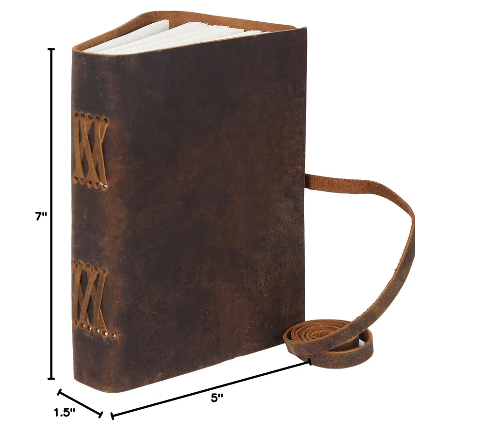 Handmade Leather Journal | Writing Diary | Bound Daily Notepad For Men & Women Unlined Paper Medium, writing pad gift for artist, sketch Description Features: Premium Full Grain Buffalo Leather: This handcrafted journal is made from the finest full grain buffalo leather, expertly crafted by skilled artisans with decades of experience. High-Quality Handmade Paper: Featuring non-refillable, 100% handmade paper recycled from cotton, this journal is both acid-free and wood-free for durability and environmental friendliness. Elegant Design: The journal includes a classy string closure and a raw hand-cut design, providing a rustic yet sophisticated look. Size: 7 inches high and 5 inches wide. Versatile Usage: Perfect for artists, travelers, business executives, and more, this journal serves as an ideal sketchbook, photo album, travel notes, hunting logbook, poetry journal, food planner, commonplace book, scrapbook, or Bible journaling. Thoughtful Gift: Ideal for any occasion, this journal makes an awesome anniversary, Valentines Day, Christmas, or birthday gift for artists, travellers, and anyone who appreciates the quality craftsmanship. Product Details: Brand: KomalC Color: Brown Tan Theme: Adventure Sheet Size: 5-x-8-inch inches Pages: 240 Cover Material: Leather Ruling Type: Plain Special Feature: Soft Cover Product Dimensions: 7"L x 5"W x 1.5"Th Number of Items: 1 Manufacturer: KomalC Brand: KomalC Item Weight: 10.9 ounces Product Dimensions: 7 x 5 x 1.5 inches Is Discontinued By Manufacturer: No Color: Brown Tan Cover Material: Leather Material Type: leather Number of Items: 1 Size: 7 x 5 Ruling: Plain Sheet Size: 5-x-8-inch inches Manufacturer Part Number: A Date First Available: August 21, 2017 Handling We will ship all orders within 3 business day of payment. Delivery We Do Not Ship Outside of the Continental US. Return Policy All items qualify for returns within 30 days of receipt. Buyer is responsible for return shipping on any item that is not damaged. Feedback We take our reputation seriously, we buy and sell online, so we understand the value of trust. If you are unsatisfied with your order, please contact us and we will work with you to resolve it to your satisfaction.