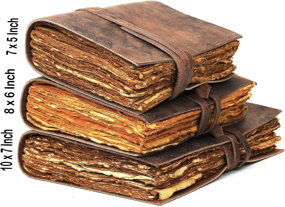 PERFECT HANDCRAFT JOURNAL - Made from 100% Buffalo Leather with Antique Deckle Edge Paper. This Book Is Hand Crafted by Artisans Working with Leather for Decades. The Color of The Journal Is Very Unique Vintage Brown. IDEAL USE AND PERFECT GIFT – Perfect Use for Business Executive, Poetry Work, Journalists, Craftsman, Writer. A Lovely Treat for Your Loved Ones for An Anniversary, Birthday or Graduation Present, Or for Someone Starting A New Adventure and A Perfect Gift for Those Who Love Vintage One. Dimension – 7(H) X 5(W) X 1.5(D) inches, 8(H) X 6(W) X 1.5(D) inches, 10(H) X 7(W) X 1.5(D) inches. With Uncut Deckle Edge Paper, Easily Handle Notebook, You Can Fit with Minimum Space, Easily Handle in Long Journey. BINDING – Binding Is Made by Hand Stitching Which Having Enough Strength That the Paper Never Comes Out. The Leather Strap Wrap Around the Journal Is Complete Solution for Paper Safety and Open-Close the Journal. The Journal Made by High Quality Buffalo Leather and Paper Have Been Used Is Vintage Historical Paper Which Is Very Durable. Classy String Key closure, Raw Handcut design. Ideal for alternative notebook, notepad, writing notebook, journalists etc. Hunting Logbook, Poetry Work, Journalists, Food Planner, Commonplace Book, Instagram Scrapbook and Bible Journaling. Makes an Awesome Anniversary, Graduation, Valentine Christmas Birthday Gift. Great gift for students, Artists, travelers.