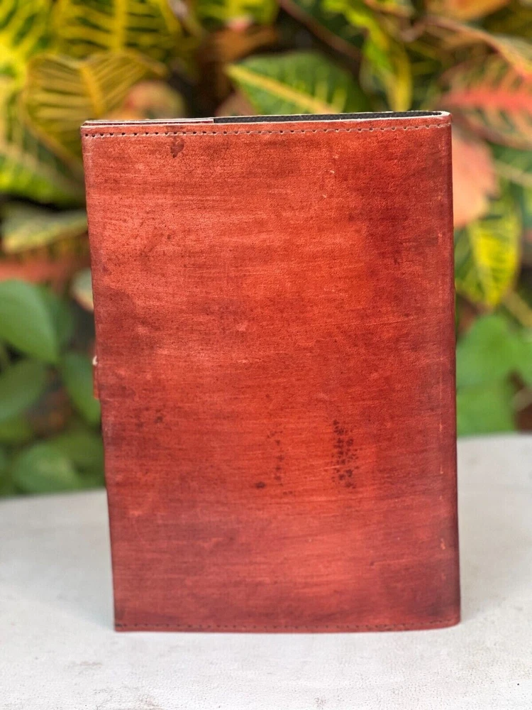 UNIQUE HANDMADE VINTAGE JOURNAL- This Vintage Journal is made with purely handmade papers and gives a rich antique look. It looks and shows as it was pulled from the history. We assure you that you will fall in love with the antique handmade journal. Size 6X9X2 *WRITING- Sketch, Doodle, Write and use any kind of a Calligraphy Pen Fountain Pen, Brush Pen, Ball Pen, Acrylic Colours, Watercolor and many more. *PREMIUM SOFT THICK GENUINE LEATHER - This leather Journal is made from naturally tanned full grain Bull leather which feels and smells great. The Journal is totally soft and very easy to use *BINDING AND LEATHER WRAPAROUND - Beautifully handcrafted and hand stitched binding to make sure that no paper comes out loose from your vintage notebook. *USAGE: Perfect Gift For Friends And Family! Grimoire Leather Journal with Key - Deckle Edge Vintage Paper Bound Journal - Book of Shadows Journal - Leather Sketchbook - Great Gift