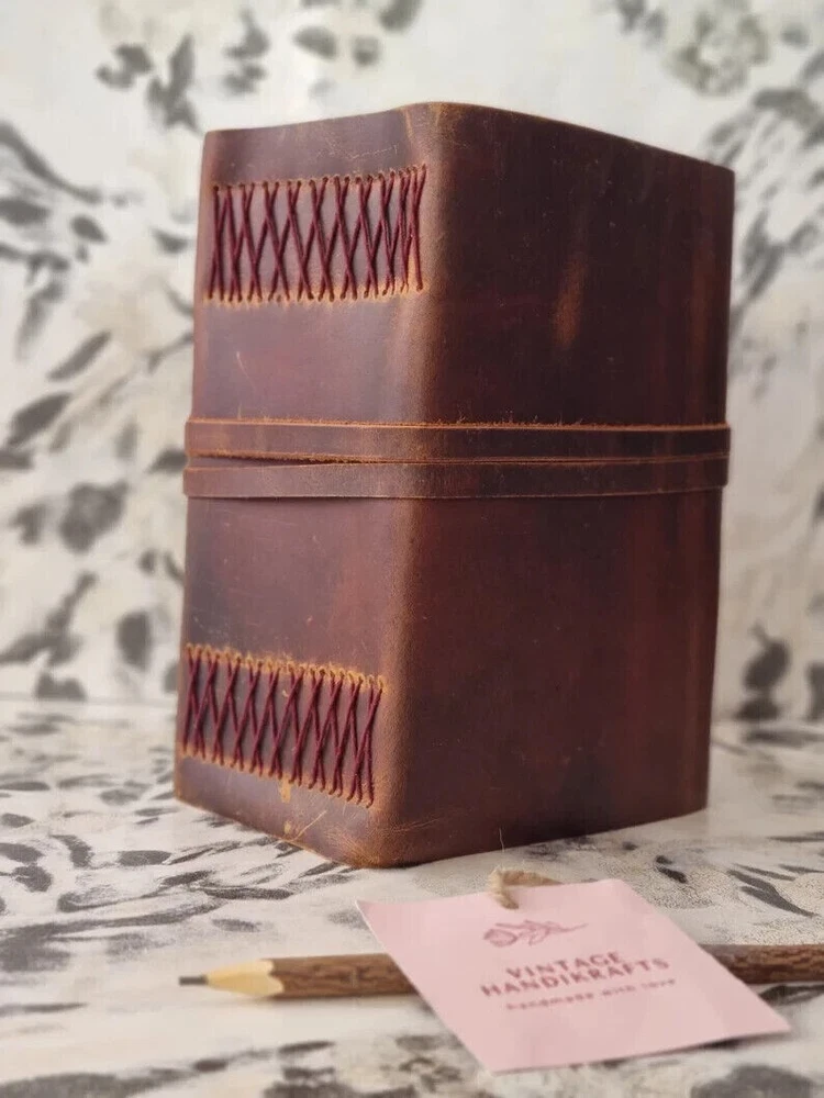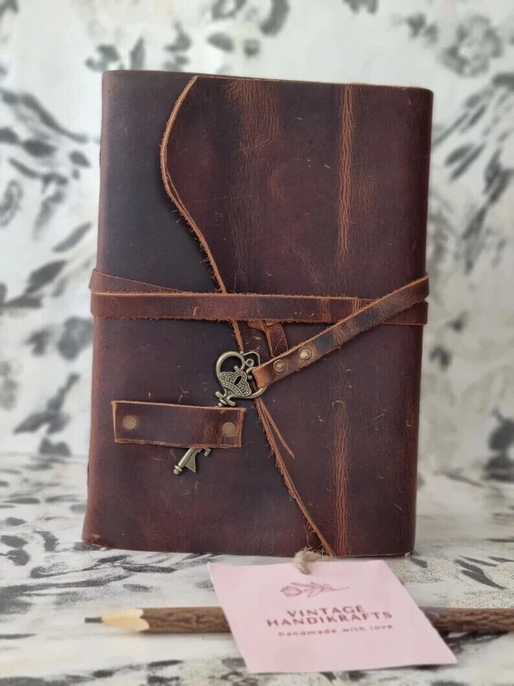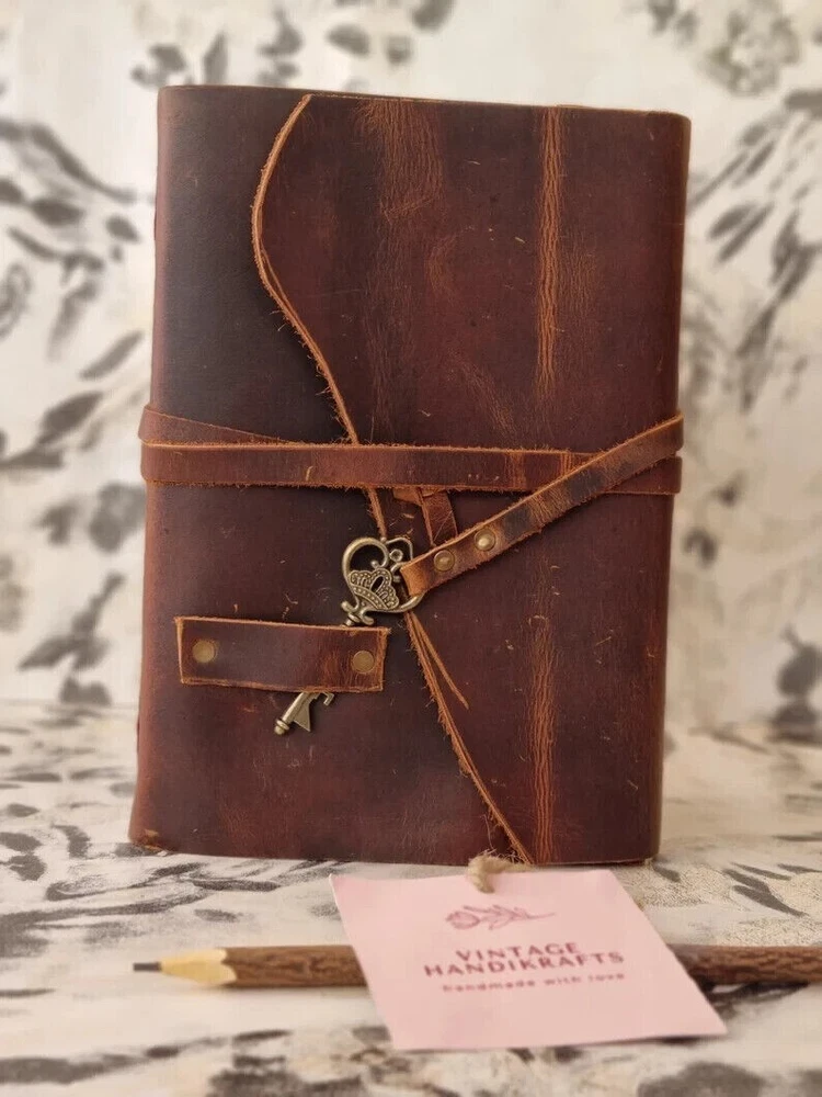 ~ A Beautiful Rustic Leather Journal diary with lock of the Highest Quality SIZE : 10(H) x 7(L) x 1(W) inches. PAPER - 600 Pages counting both side. Entirely handcrafted by artisans, each leather bound journal is a work of art. * BEAUTIFULLY HANDCRAFTED High-quality top-grain 100% leather that looks, smells and feels beautiful. Naturally tanned leather will age with character - or simply rub away your markings if you choose. A lifelong companion on your journeys. * ANTIQUE Vintage Paper - vintage BLANK recycled cotton that is acid-free, chemical-free and tree-free. This gorgeous, thick antiqued paper prevents bleed-through and feels amazing. Environmentally sensitive and fountain pen friendly. * Use Any Kind Of Pen - Sketch, Doodle, Write on your journal notebook with a Calligraphy Pen Fountain Pen, Brush Pen, Ball Pen, Acrylic Colors, Watercolor and many more. * STYLISHLY ANCIENT - Antique cotton paper combined with the beauty of distressed leather, hand stitched by Artisans, creates a keepsake you will cherish forever. Makes a great gift for the men, women, and wiccans in your life! * OLD SCHOOL VINTAGE FEEL: Let this journal take you back in time to when things were just so simple. Let your art flow under the shadow of our classic cover or inscribe poetry on our smooth creamy pages. The leather strap will keep your diary tightly closed when not in use or could be used as a fancy bookmark. The notebook makes a perfect gift or present for anniversary, graduation, Birthday and will surely excite anyone. * Sturdy Binding, Leather Wraparound And Key - Sturdy hand stitched binding to make sure that no paper comes out loose. The leather wraparound with a cute key that slips in will make sure that the papers inside the journal are safe and secure. Mothers Day Gifts, Personalized Gift For Mom, Mama Gift From Daughter, Mom Birthday Gift, New Mom Gift, Step Mom Gift