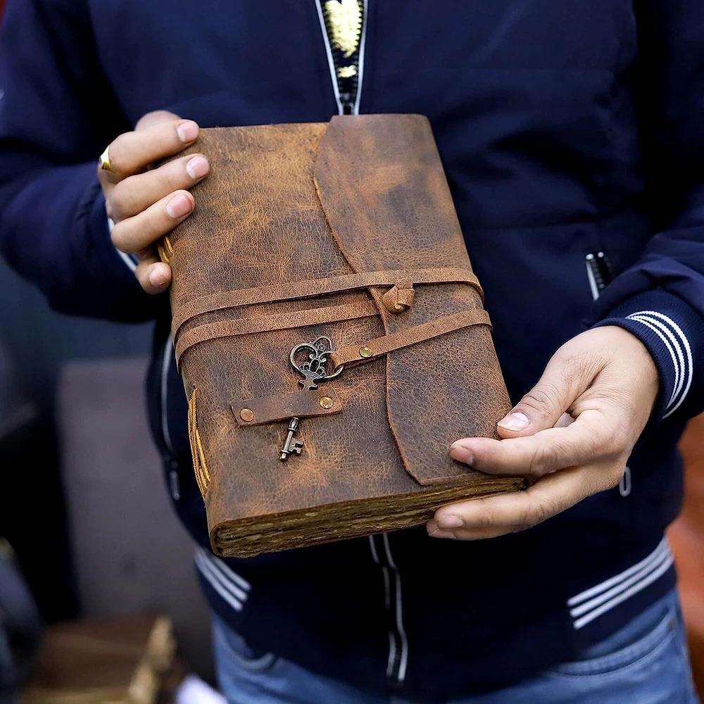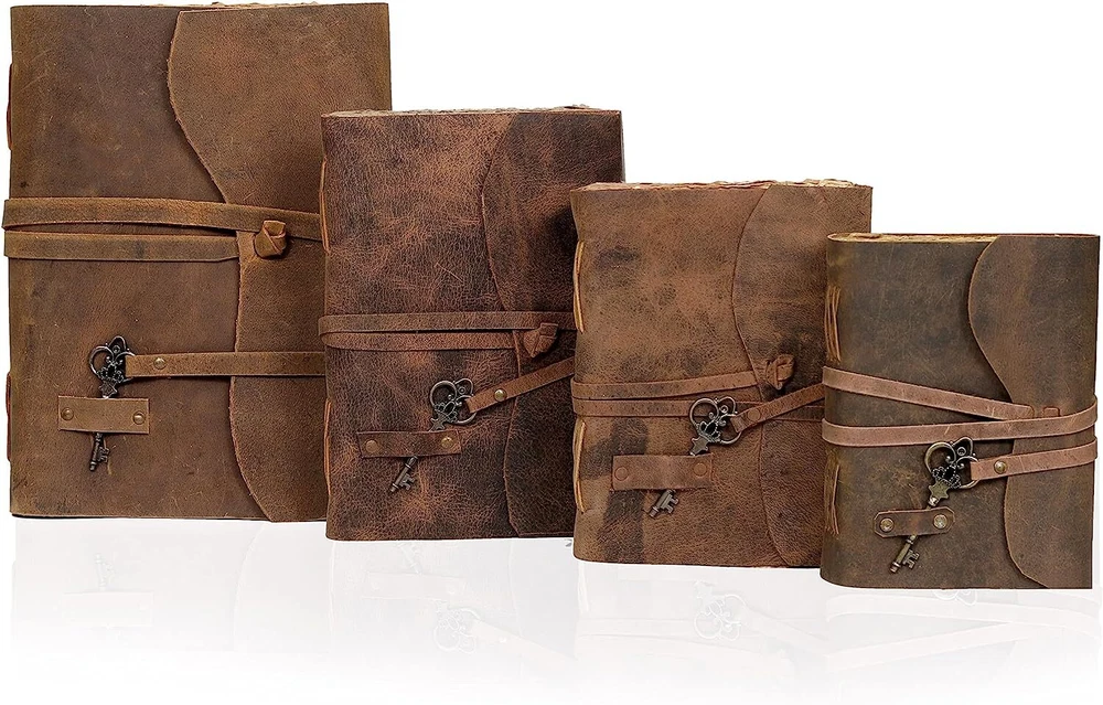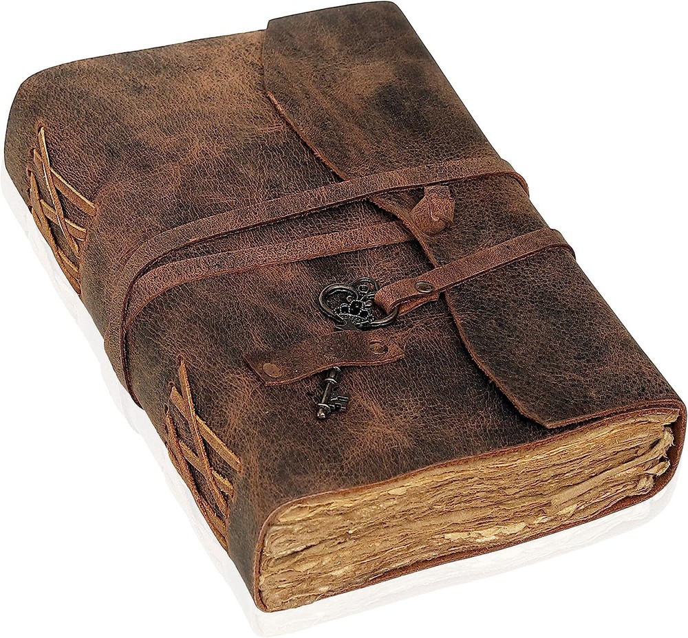 PERFECT HANDCRAFT JOURNAL - Made from 100% Buffalo Leather with Antique Deckle Edge Paper. This Book Is Hand Crafted by Artisans Working with Leather for Decades. The Color of The Journal Is Very Unique Vintage Brown. IDEAL USE AND PERFECT GIFT – Perfect Use for Business Executive, Poetry Work, Journalists, Craftsman, Writer. A Lovely Treat for Your Loved Ones for An Anniversary, Birthday or Graduation Present, Or for Someone Starting A New Adventure and A Perfect Gift for Those Who Love Vintage One. Dimension – 7(H) X 5(W) X 1.5(D) inches, 8(H) X 6(W) X 1.5(D) inches, 9(H) X 6(W) X 1.5(D) 11(H) X 8(W) X 1.5(D) inches. With Uncut Deckle Edge Paper, Easily Handle Notebook, You Can Fit with Minimum Space, Easily Handle in Long Journey. BINDING AND KEY BOOKMARK – Binding Is Made by Hand Stitching Which Having Enough Strength That the Paper Never Comes Out. The Key Is Very Antique Can Be Used as Bookmark. The Leather Strap Wrap Around the Journal Is Complete Solution for Paper Safety and Open-Close the Journal. The Journal Made by High Quality Buffalo Leather and Paper Have Been Used Is Vintage Historical Paper Which Is Very Durable. Classy String Key closure, Raw Handcut design. Ideal for alternative notebook, notepad, writing notebook, journalists etc.Hunting Logbook, Poetry Work, Journalists, Food Planner, Commonplace Book, Instagram Scrapbook and Bible Journaling. Makes an Awesome Anniversary, Graduation, Valentine Christmas Birthday Gift. Great gift for students, Artists, travellers.