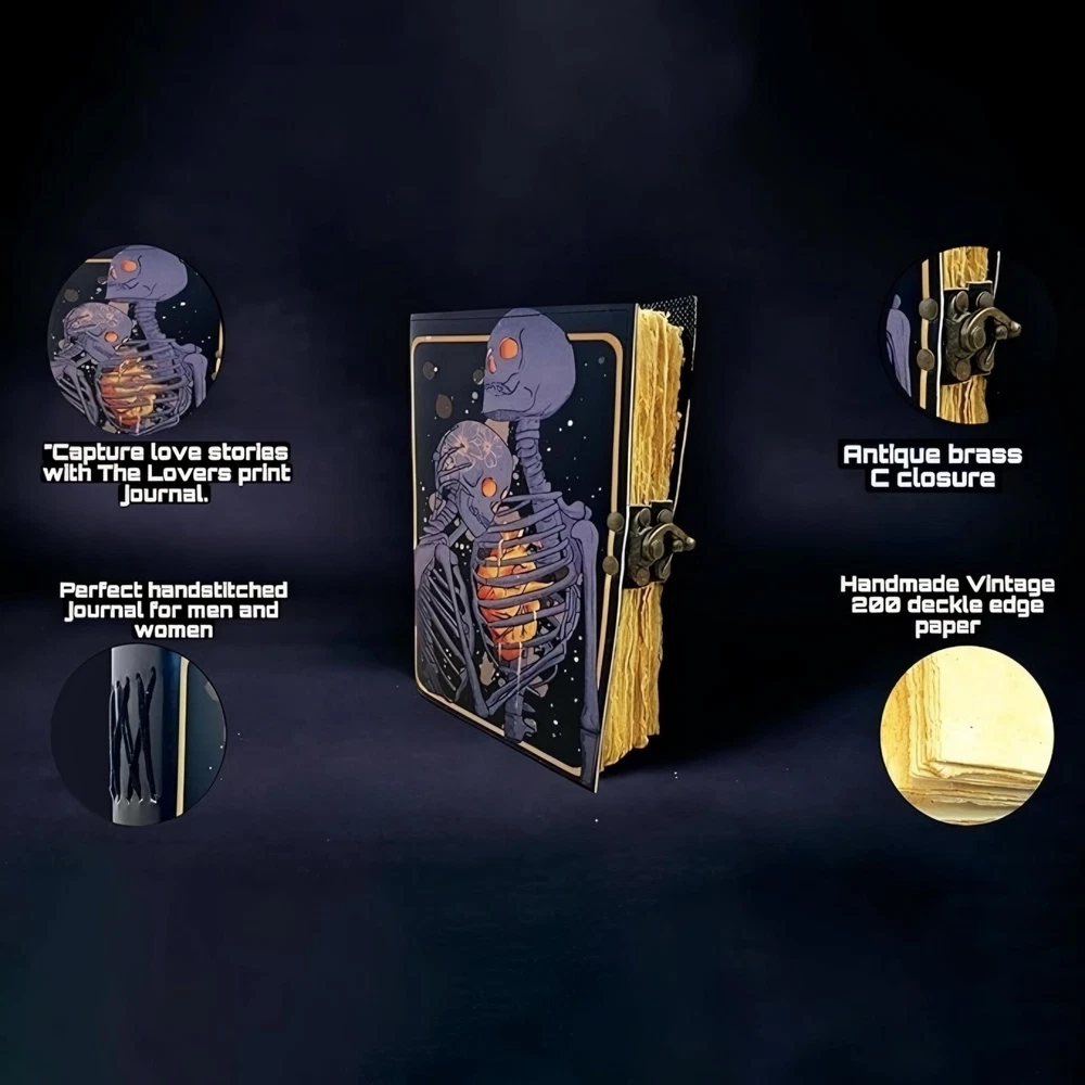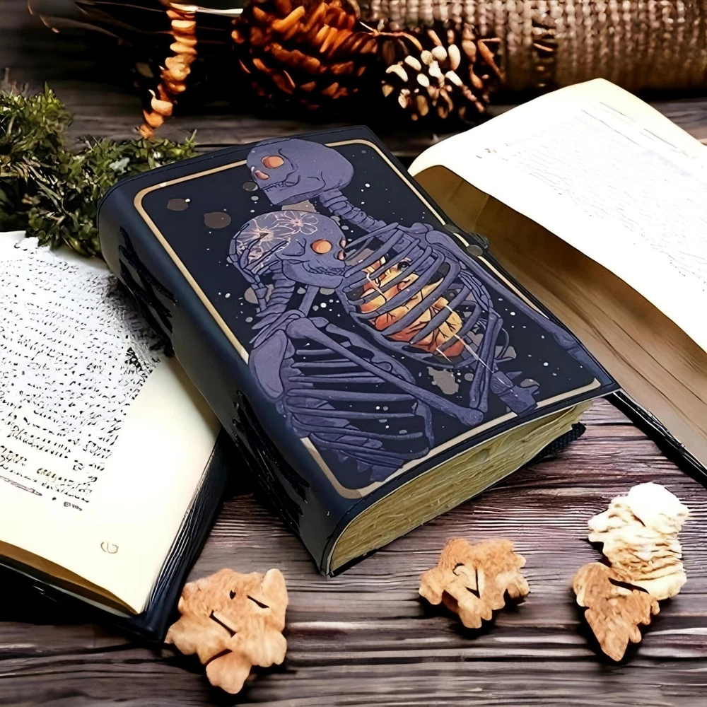 ✅BEAUTIFULLY CRAFTED: Our handmade artisan leatherbound spellbook grimoire journals are crafted from genuine leather. The black colouring gives it a beautiful antique vintage feel. Being hand-made from natural leather. The cover features a beautiful gold designing.. ✅VINTAGE LOCK AND STURDY BINDING - The vintage clasp lock will keep all your valuable writing locked inside.Sturdy hand stitched binding to make sure that no paper comes out loose from your Spell BOOK. ✅PERFECT FOR GIVING: Suitable for both men or women to write in, this locking diary daily travelers notebook is perfect for an avid writer, or Harry Potter fan looking for a magic spell book. Ideal to give as a birthday gift, valentines, halloween, graduation or wedding anniversary present. ✅Spell Book Tarot Journal Merchandise Popsocket Grimoire Wiccan Witch Prop Spells Decor Skull Lovers Blank Notebook Gift Props Spellbook Blanks With Clasp Coloring Books For Men Women Adult and you can keep this journal at your bedside as like memory of your loved ones.. ✅USE ANY KIND OF PEN - Size: 5"X7" This Gothic gifts Sketch, Doodle, Write on your Book with a Calligraphy Pen Fountain Pen, Brush Pen, Ball Pen, Acrylic Colours, Watercolor and many more. We guarantee no bleed through. SIZE - 5X7 Inch. ✅OUR PROMISE: We are positive you will love our products, but if you don't for any quality reason, we will replace or refund for up to 30 days after purchase. Our friendly customer service team are always available to answer any questions you might have. ✅MANY USES - This aesthetic Lovers Journal Can be used as a Hocus Pocus gifts , the lovers tarot journal, gothic notebook, skull journal, spell books halloween decorations, book of spells halloween decor. grimoire spell book, drawing or sketching and compact for carrying in your bag. Ideal for alternative Artist Sketchbooks, Photo Album, Traveling Notes, Business Executive, Logbook, hocus pocus spell book , Journalists, Food Planner, old spell notebook, antique handmade skull journal