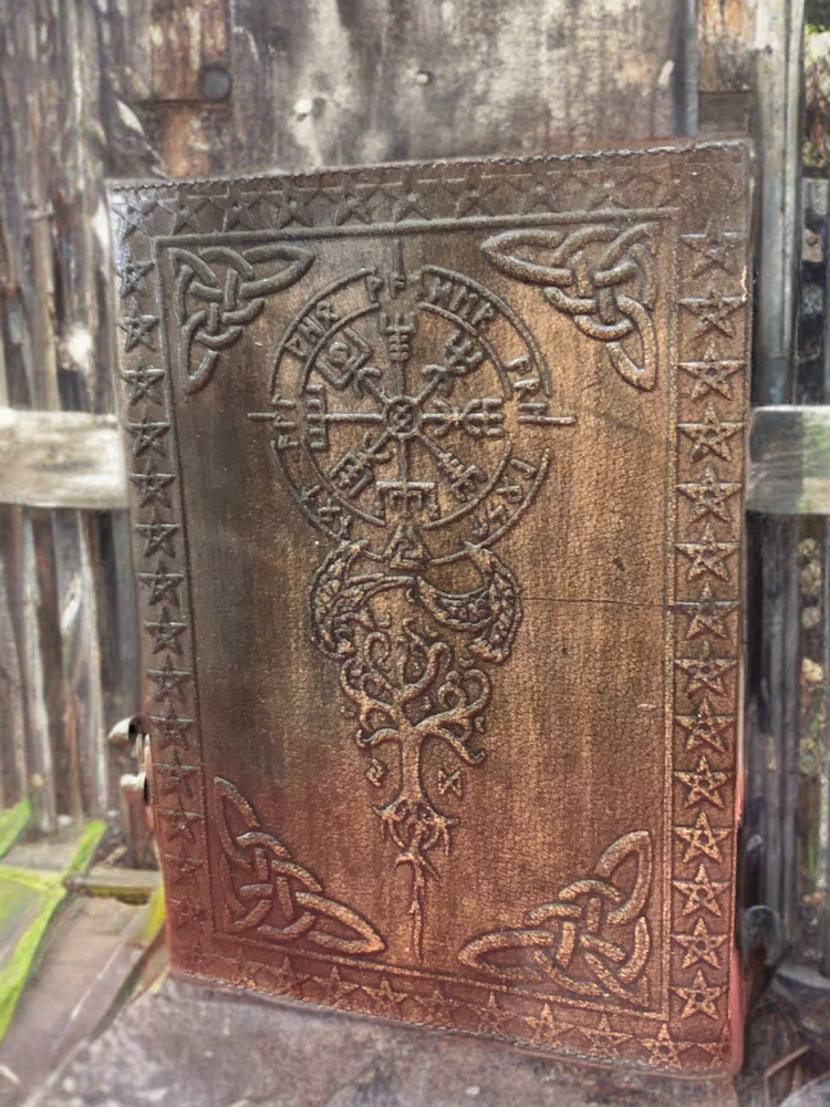 ✅UNIQUE HANDMADE VINTAGE PAPER - Vintage Journal is made with 200 pages of Antique Paper which looks like it was pulled from history. You will fall in love with the the antique handmade cotton paper which is unique to our Vintage Journal Notebook. ✅EXQUISITE & UNIQUE WITCH SEVEN STONE: The vintage journal is Antique color embossed which helps to reveal inner truth within yourself and encourage self-awareness and self expression. We have taken extra to make sure that the emboss is perfect in every piece.\ ✅VINTAGE LOCK AND STURDY BINDING - The vintage lock will keep all your valuable writing locked inside.Sturdy hand stitched binding to make sure that no paper comes out loose from your vintage notebook. ✅USE ANY KIND OF PEN - Sketch, Doodle, Write on your Leather Bound Journal with a Calligraphy Pen Fountain Pen, Brush Pen, Ball Pen, Acrylic Colours, Watercolor and many more. \ ✅MANY USES - Can be used as a notepad, journal, writing notebook, sketch book. 1.25 inch thickness, easy for handwriting, drawing or sketching and compact for carrying in your bag. Ideal for alternative Artist Sketchbooks, Photo Album, Traveling Notes, Business Executive, Logbook, Poetry Work, Journalists, Food Planner, Instagram Scrapbook and Bible Journaling. ✅A journal is more than just a blank canvas; it's a trusted confidant where memories are stored. Whether it's for your spouse, or a passionate writer in your family, this diary makes a thoughtful and timeless gift. Makes a great gift for father's day, Mother's Day, Valentines, Graduation or any event that calls for a gift. Perfect for those seeking inspiration, or simply cherishing the power of written word, it's a gift that transcends time.