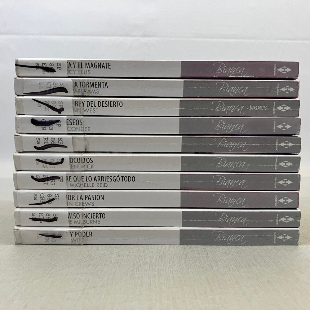 Harlequin Bianca Series Novels in SPANISH 10 MMPB Romance Book Lot EX-LIBRARY These are used items with notable edge and shelf wear. Spines may be creased, bindings may be weakened or have torn areas, but most should be intact. Some pages have started to separate from the binding. Former library items have stickers, stamps, and other markings. See pictures for overview of condition. We are BrightLight Books. We have sold tens of thousands of items online since 1998. Money Back Guaranteed! For Local Pickup in our Fern Park, FL store, please message us! 2-29 (3402858) 6/5/2025 AH