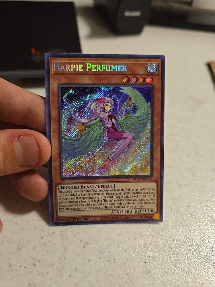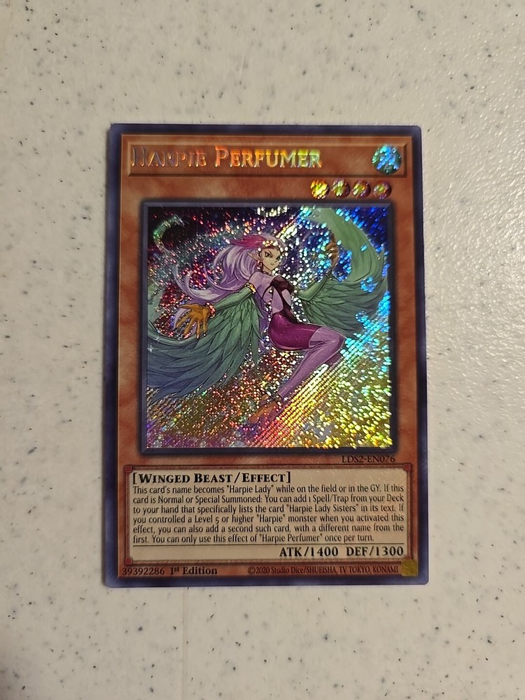 Elevate your Yu-Gi-Oh! TCG collection with the Harpie Perfumer LDS2-EN076 from Legendary Duelists: Season 2. This Secret Rare card features the formidable Winged Beast creature type, boasting an attack power of 1400 and a defense strength of 1300. It's a must-have for players and collectors alike, seeking to enhance their game with powerful effect cards. The Harpie Perfumer, with its 1st Edition status, is a prized addition to any deck or display. Produced by Konami and presented in English, this card is a standout piece with its unique Wind attribute, ready to make a significant impact in your next duel.