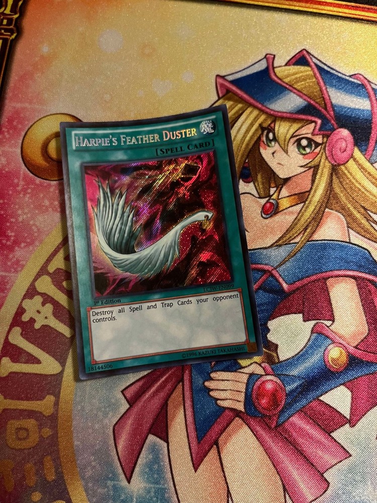 This rare and highly sought-after Harpie's Feather Duster card from the Yu-Gi-Oh! TCG is part of the Legendary Collection 4: Joey's World set. It features a Spell-Normal card type, with a card number of LCJW-EN099, and is manufactured by Konami. The card is in English language and has a Secret Rare rarity, making it a valuable addition to any collector's CCG individual cards or collectible card games collection. The card's unique features include being a 1st Edition and belonging to the Harpy creature/monster type. It is perfect for players who love to play Spell cards and is an ideal addition to any deck. Don't miss out on the chance to own this rare card!