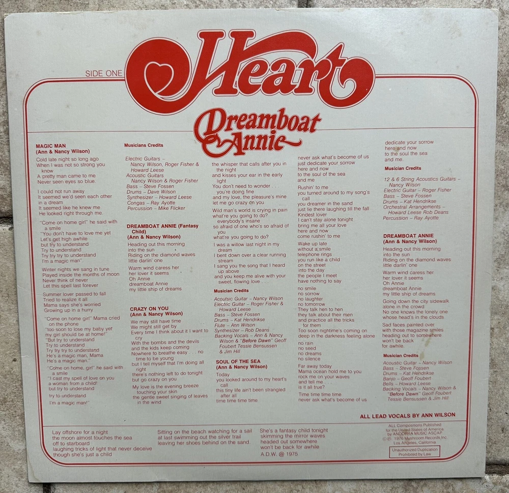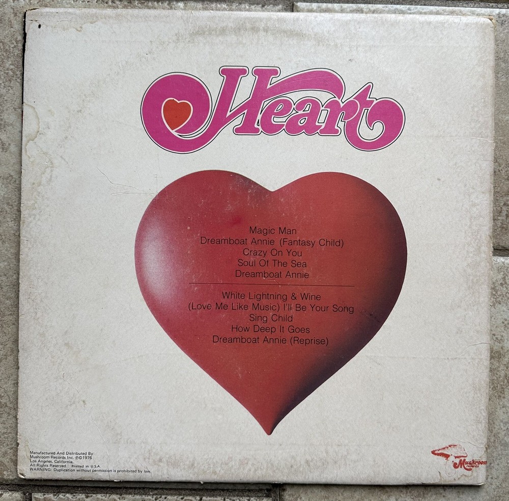 Heart Dreamboat Annie Canada 1976 Mushroom Vinyl Record LP Ex/VG MRS5005Vinyl looks to be in good to very good condition. The sleeve looks very good to excellent and the cover good to very good with minor wear . However, I am not an expert on grading vinyl records and I do not have a record player, so look at my photos and you be the judge. Please view description carefully and Please take advantage of the zoom feature when viewing the photos. The photos count as part of the description in case I miss a visual defect in the written description. Most of our listings were described by researching and using information we found on similar things. Feel free to ask any questions to make sure It's exactly what you are looking for. We try to describe as best we can, if we miss something it's not intentional. THANK YOU FOR SHOPPING WITH US "Good and clean pre-owned condition - Please see all photos for details on condition and measurements."