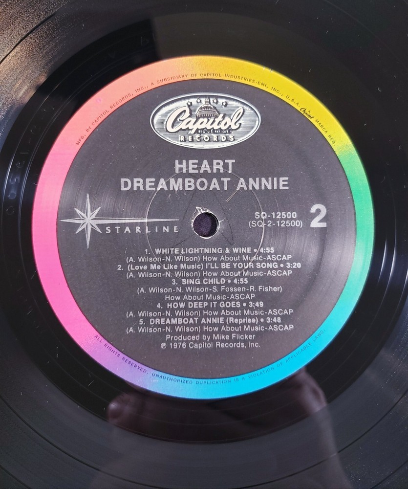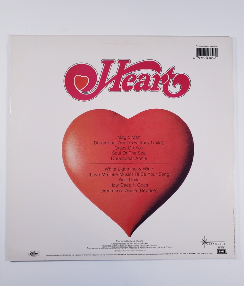 Heart Dreamboat Annie LP Vinyl (1976, Starlite Capitol Records) SQ-12500 . LP Vinyl is in good condition Cardboard sleeve cover is in good condition Inlay is in good condition Please review the pictures for your personal condition opinions LP Vinyl was tested and working LP Vinyl comes with the original cover and LP record Buyer will receive the item pictured above. Payment must be paid within 5 days to avoid any delays. If payment is not received within 5 days of purchase, an "Unpaid Item Case" will be opened. Once payment has been received the item will be shipped on the next business day. Shipped with USPS Media Mail.