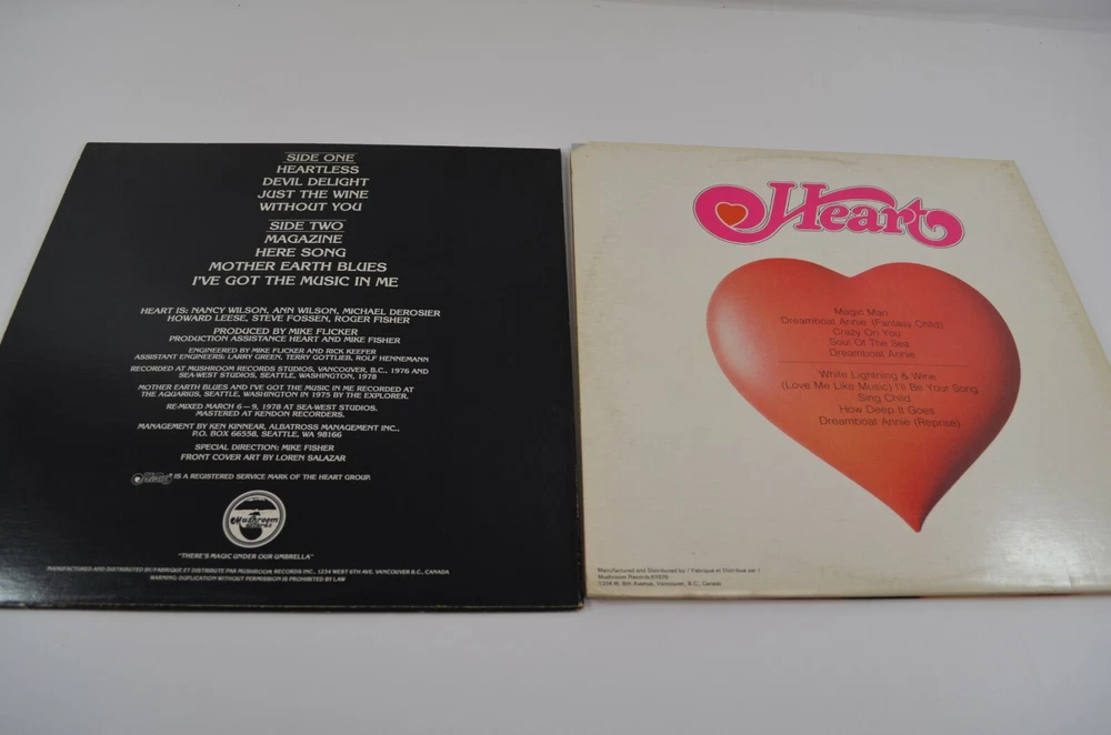 Lot of 2 Heart vinyl records, including: Dreamboat Annie (Mushroom Records Canada, 1975). Record is in EX condition, while the sleeve is in G condition, as it has a cut corner. Magazine (Mushroom Records Canada, 1977). Record is in VG+ condition, while sleeve is also in VG+ condition. Please see photos for further details. PLEASE NOTE: Records are visually inspected only, not tested on a record player. We are not professional graders. SHIPPING : YES - we combine shipping. Add as many items to your cart as you like! YES - we ship fast! Your order will be on its way to you within 2 business days of cleared payment. Taxes & Duty: Canadian buyers will be c ha rged GST, HST or PST (based on your province of residence) on top of your purchases. We do not charge tax on shipping, only on the item purchased. US buyers : Don't worry about duty! There are no import duties or customs charges unless your order is valued at more than $800 USD. International buyers : Import duties, taxes, and charges are not included in the item price or shipping cost. These charges are the buyer's responsibility. P lease check with your country's customs office to determine what these additional costs will be prior to bidding or buying. Returns : We accept returns only within 30 days of shipping date. We do our best to describe any flaws and give as much detail as possible on all items, however all items are sold as is. Buyer pays return shipping. About Storage Warrior : We've been rescuing awesome stuff from storage lockers, estate sales and about-to-be-thrown-out collections since 2012. We love putting cool stuff in the hands of people who will love it, and keeping history out of the landfill. We hope you enjoy shopping with us!