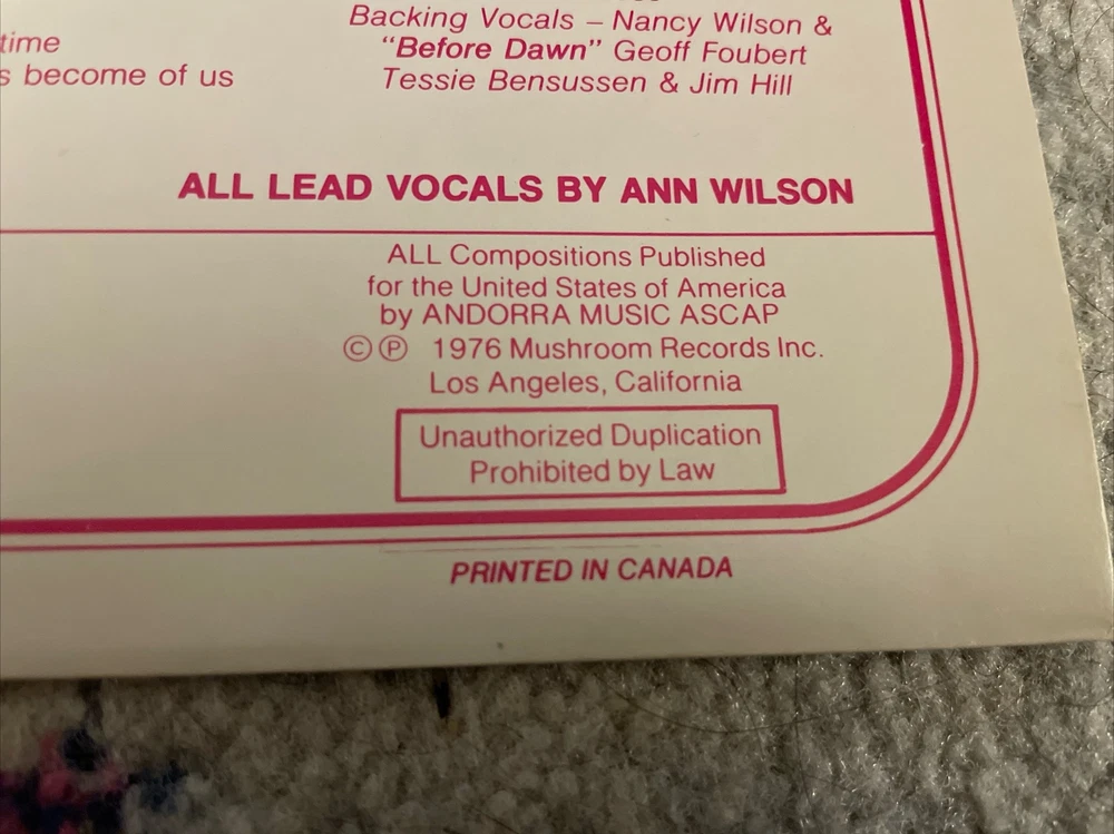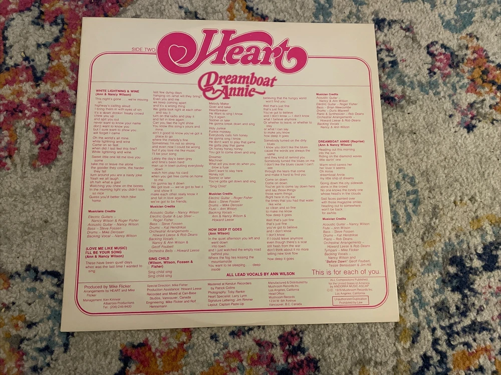 Original 1976 Canadian pressing on Mushroom label. Vinyl is a strong VG+, sleeve isn’t too bad, but graded VG due to some ring wear and a mark on front. Gatefold sleeve and custom inner liner sleeve with lyrics. A strong original copy!