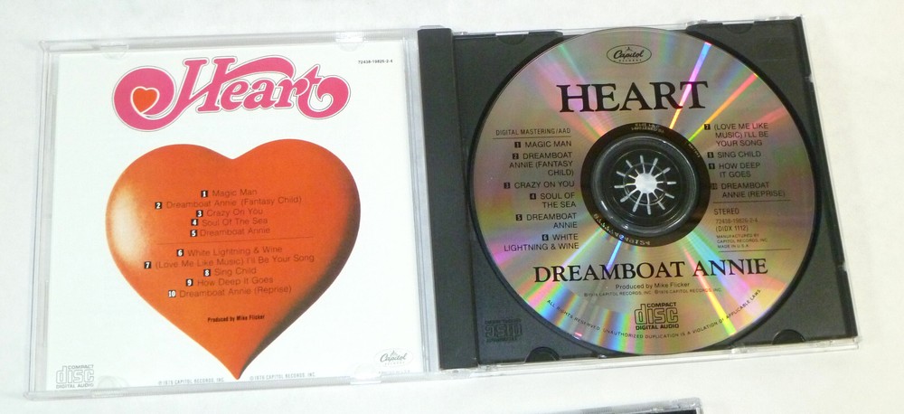 Sale is for both CDs. Dreamboat Annie is an early Capitol pressing. Really good sounding disc. Small amount of light to very minor scratches on the discs. Fully play tested. Fanatic shows that Heart still rock. Small crack in the Dreamboat case. Smoke free. Actual item(s) shown. Some of ebay's prefilled information may be incorrect. Shipping: Ships via USPS Mail within the USA. Please note there may be a delay in the scanning and delivery of mail. Buyer pays return shipping. No refunds on shipping charges. Seller's original shipping charge (if any may be deducted from refund. Returned item(s) must be returned in the condition sent. No refunds given because you did not like a CD or musical content. Item(s) will be packed well for safe shipping. Please be sure your correct shipping address is registered with ebay.