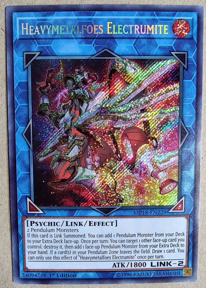 This listing is for one - Heavymetalfoes Electrumite - Secret Rare card from the Yu-Gi-Oh! 2018 Mega-Tins Mega Pack Set 1st Edition. The card is in Near Mint condition with no observable wear as shown in the photos. The photos included are of the actual card offered. The price includes shipping via Ebay Standard Envelope within the continental U.S. Item will ship padded within a sleeve and top loader. Card is from a smoke free environment. Please reach out with any additional questions.