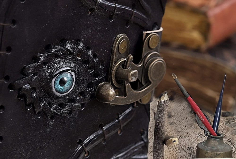 VINTAGE LOCK AND STURDY BINDING - The vintage clasp lock will keep all your valuable writing locked inside. Sturdy hand stitched binding to make sure that no paper comes out loose from your Spell BOOK. USE ANY KIND OF PEN - Size: 5"X7" This Hocus Pocus gifts Sketch, Doodle, Write on your Hocus Pocus Spell Book with a Calligraphy Pen Fountain Pen, Brush Pen, Ball Pen, Acrylic Colors, Watercolor and many more. We guarantee no bleed through. SIZE - 5X7 Inch. UNIQUE CLASP LOCK EASY TO OPEN - Stylishly Medieval - Ancient looking rustic cotton unlined paper combined with the beauty of distressed leather, hand stitched by Artisans, creates a keepsake you will cherish forever. Makes a great Hocus Pocus gifts for the men, women, and wiccans in your life! Spell Book Journal Merchandise Pop socket Grimoire Wiccan Witch Prop Spells Decor Horror Blank Notebook Gift Props Spellbook Blanks With Clasp Coloring Books For Men Women Adult MANY USES - Hocus Pocus merchandise Can be used as a Hocus Pocus gifts , Hocus Pocus Book, Hocus Pocus journal, spell books halloween decorations, book of spells Halloween decor. grimoire spell book, drawing or sketching and compact for carrying in your bag. Ideal for alternative Artist Sketchbooks, Photo Album, Traveling Notes, Business Executive, Logbook, hocus pocus spell book , Journalists, Food Planner, hocus pocus decor .