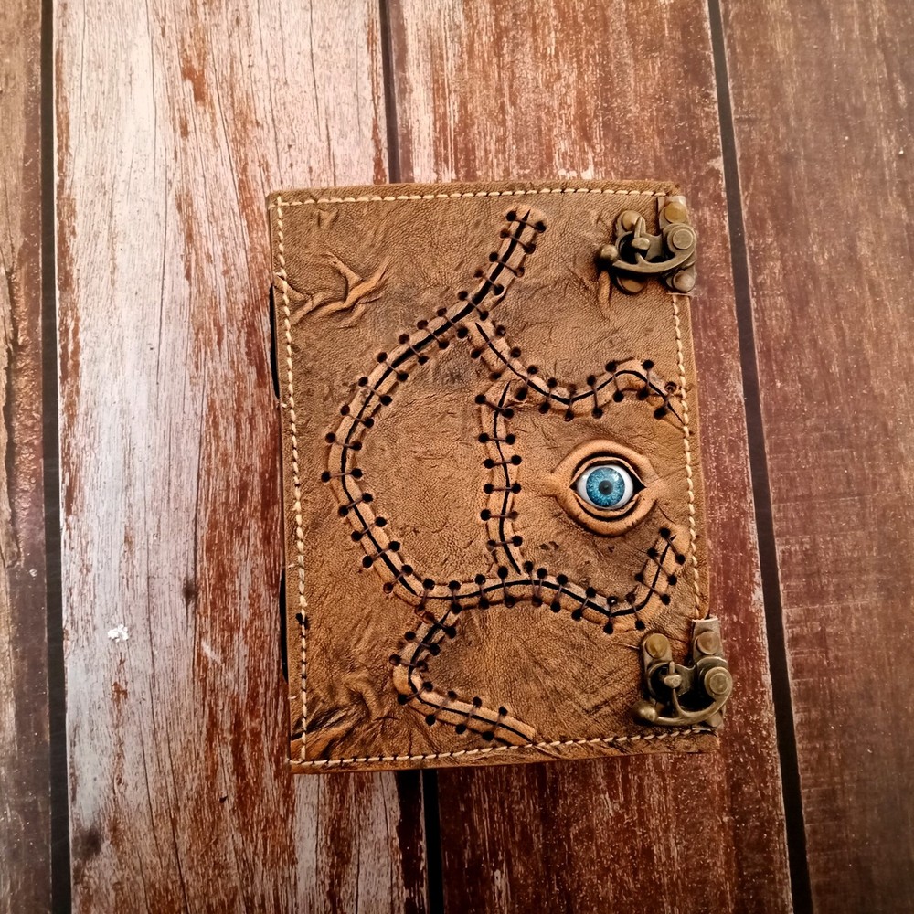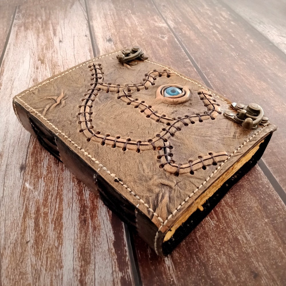 Hocus Pocus book of spells Antique leather journal With eyes Book of Shadows, Spell Book - recipe book, Antique Color with lock notebook Sketchbook SIZE : 7x5 Inches, 8x6 Inches,10x7 Inches PAPER - Handmade paper, Deckle edge paper PAGES -200 MATERIAL: Genuine Leather with a real leather scent. Naturally tanned with special oil. USES: Easy for handwriting, drawing or sketching and compact enough for carrying in your bag. Ideal for alternative Artists, Travelling, Business, Teen Journals, Poetry Work, Journalists. SIZE & PAGES: Perfect Size for many users: 7x5, 8x6, 10x7 (Inches) & 200 Environmental friendly cotton unlined handmade paper and is also acid free. Perfect Gift for Friends, Family, Birthdays, Holidays, Fathers Day & Mothers Day. A special keepsake for your thoughts, plans & ideas. Designed to stand out from the crowd. This old-fashioned leather has an amazing smell!