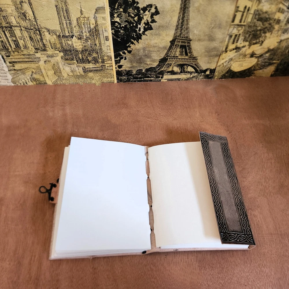 Hours Embossed Journal Leather Journal Leather dairy, Brown Journal, sketchbook, notebook, travel journal, Dream journal, personalized Gift. 1. The Hours Embossed Journal is a beautifully crafted leather journal that exudes elegance and sophistication. Made from high-quality leather, this journal is designed to last and age gracefully over time. The rich brown color adds a touch of warmth and character, making it a perfect companion for any occasion. 2. With its 200 pages, this journal offers ample space for all your writing, sketching, and note-taking needs. Whether you're a writer, artist, or simply someone who loves to jot down their thoughts, this journal is a versatile tool that can cater to your creative endeavors. The embossed design on the cover adds a unique touch, making it a truly personalized gift for yourself or a loved one. 3. This leather diary is not just a practical item, but also a stylish accessory that can be taken anywhere. Its compact size makes it easy to slip into a bag or backpack, ensuring that you can capture your thoughts and ideas on the go. Whether you're traveling, attending meetings, or simply enjoying a quiet moment at home, this journal is the perfect companion to document your experiences and dreams. 4. The Hours Embossed Journal is not just a blank canvas for your thoughts, but also a dream journal that can help you explore your subconscious mind. With its dedicated section for recording dreams, you can delve into the realm of your imagination and unlock hidden meanings and symbols. This journal encourages self-reflection and introspection, allowing you to gain a deeper understanding of yourself and your aspirations. 5. Whether you're purchasing this journal for yourself or as a gift, its personalized nature adds a special touch. You can have your initials or a meaningful symbol embossed on the cover, making it a truly unique and cherished item. The Hours Embossed Journal is more than just a notebook – it's a companion that will accompany you on your journey of self-expression and creativity.