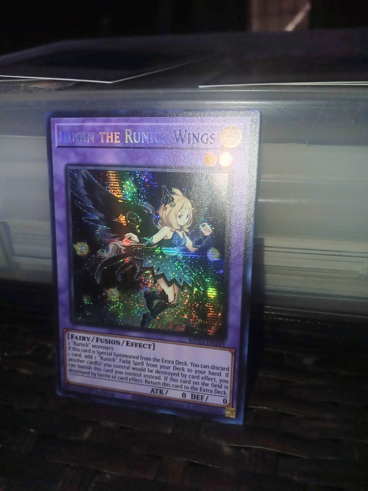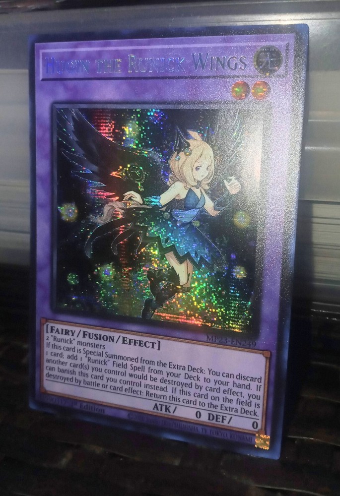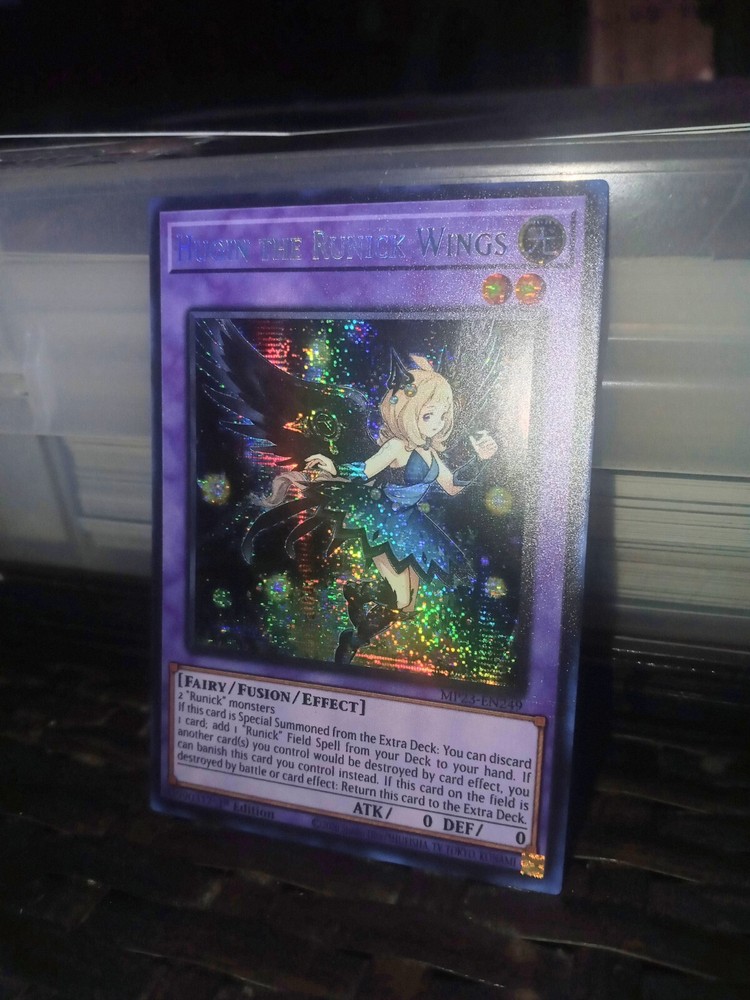 This Yu-Gi-Oh! TCG card is a must-have for collectors and players alike. Featuring Hugin the Runick Wings, this Prismatic Secret Rare card is part of the 25th Anniversary Tin: Dueling Heroes Mega Pack. With an Attack/Power of 0 and Defense/Toughness of 0, this Effect Fusion card is sure to be a valuable addition to any deck. The card is in English and manufactured by Konami, making it a rare find for fans of the game. The card number is MP23-EN249 and it is a 1st Edition. Get your hands on this unique card today!