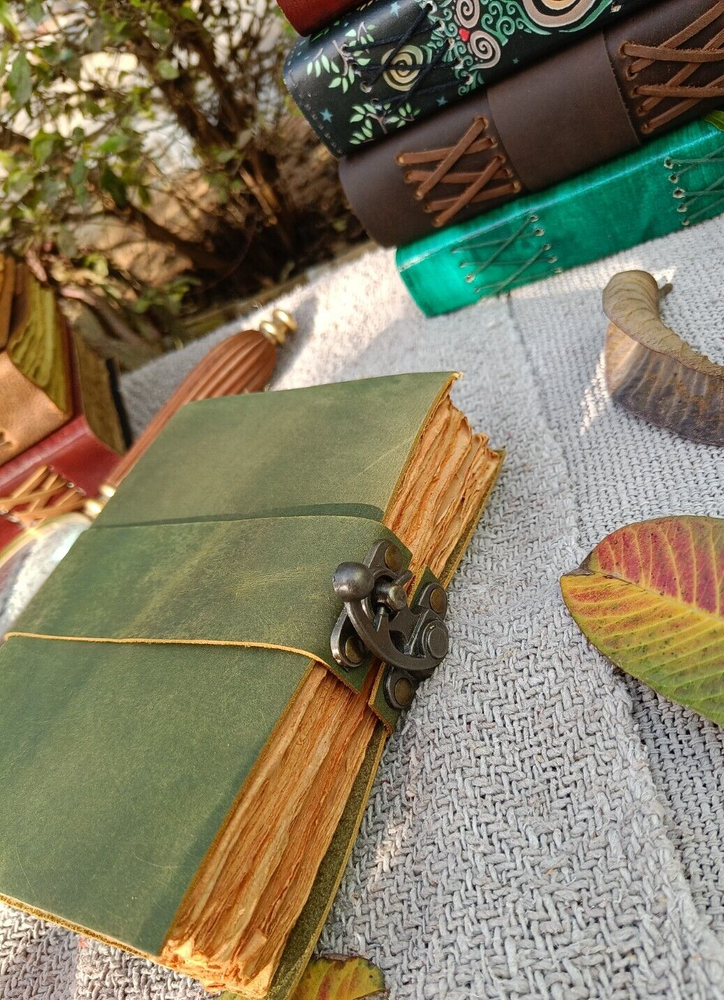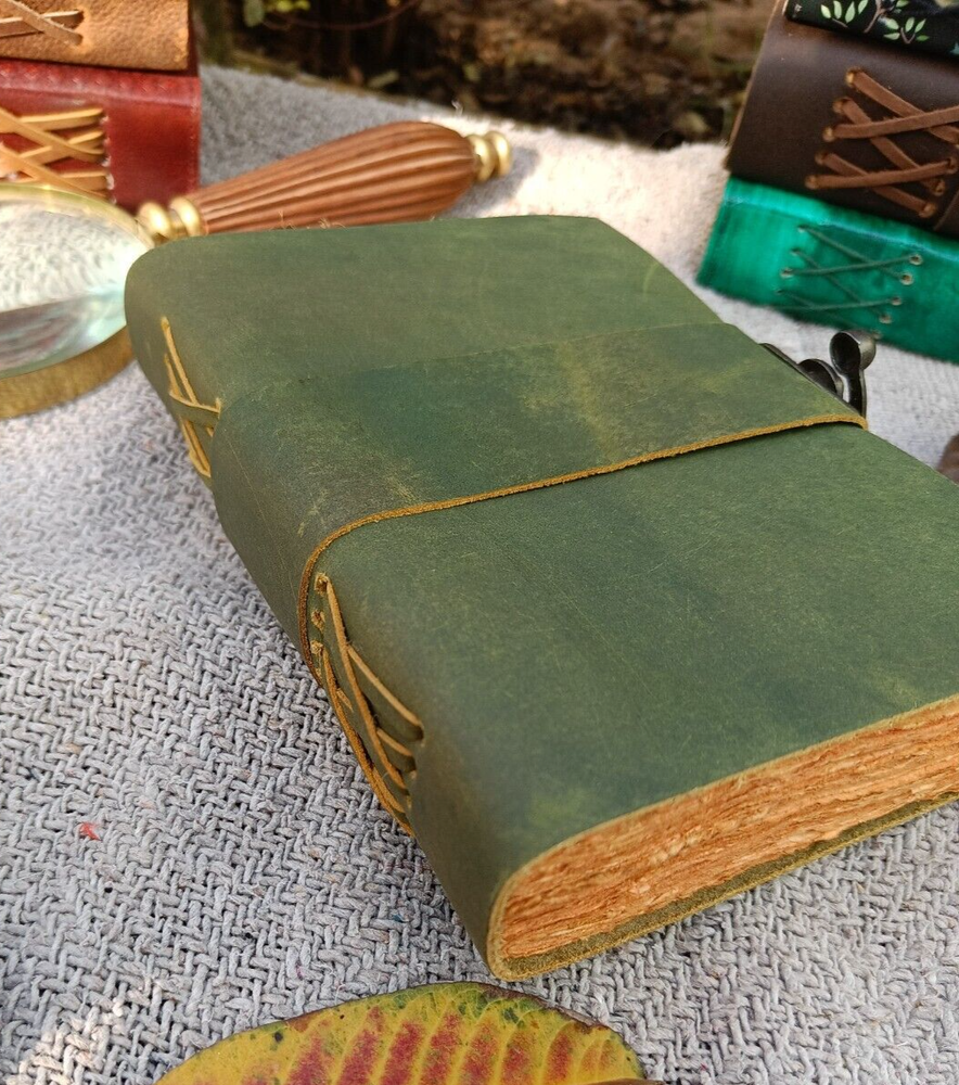 Features: * Material: Leather & Recycled Paper. * Size: approx. (7 x 5 x 1.5 inches) (17.78 x 12.7 x 3.81 CM) * 200 pages ( counting both sides) of handmade khadda paper, made from recycled cotton. * Eco-friendly. * Handmade. * Brand New. * A very beautiful gift for yourself or your friends. * Great diary, travel journal and notebook.