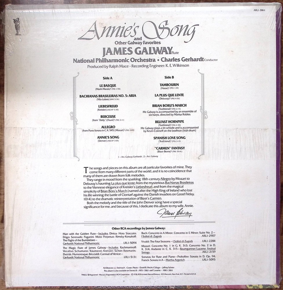 JAMES GALWAY ANNIE'S SONG AND OTHER GALWAY FAVORITES RCA RECORDS VINYL LP 200-46 OVERALL EXCELLENT CONDITION; WITH SHRINK THIS LP WAS PART OF AN ESTATE THAT WE RECEN TLY AQUIRED AND ARE LIQUIDATING . WE HAVE NEVER PLAYED ANY OF OUR LPS, HOWEVER WE ARE REPRESENTING THAT THEY WILL PLAY NICELY. WE OFFER FREE RETURNS FOR ANY REASON, SO IF THERE ARE ANY ISSUES PLEASE JUST LET US KNOW. WE ARE NOT RECORD DEALERS...SIMPLY LIQUIDATORS SO OUR DESCRIPTION IS SIMPLY A GENERAL OBSERVATION OF THE RECORD AND THE COVER. IT IS NOT REPRESENTED AS ANY OFFICIAL GRADE. WE ARE ALWAYS HAPPY TO COMBINE SHIPPING IF YOU PURCHASE MULTIPLE ITEMS...JUST SHOOT US A MESSAGE AND WE WILL BE HAPPY TO COMBINE ALL OF THE ITEMS INTO 1 INVOICE. Be sure to check out all of the other great items that we have HERE