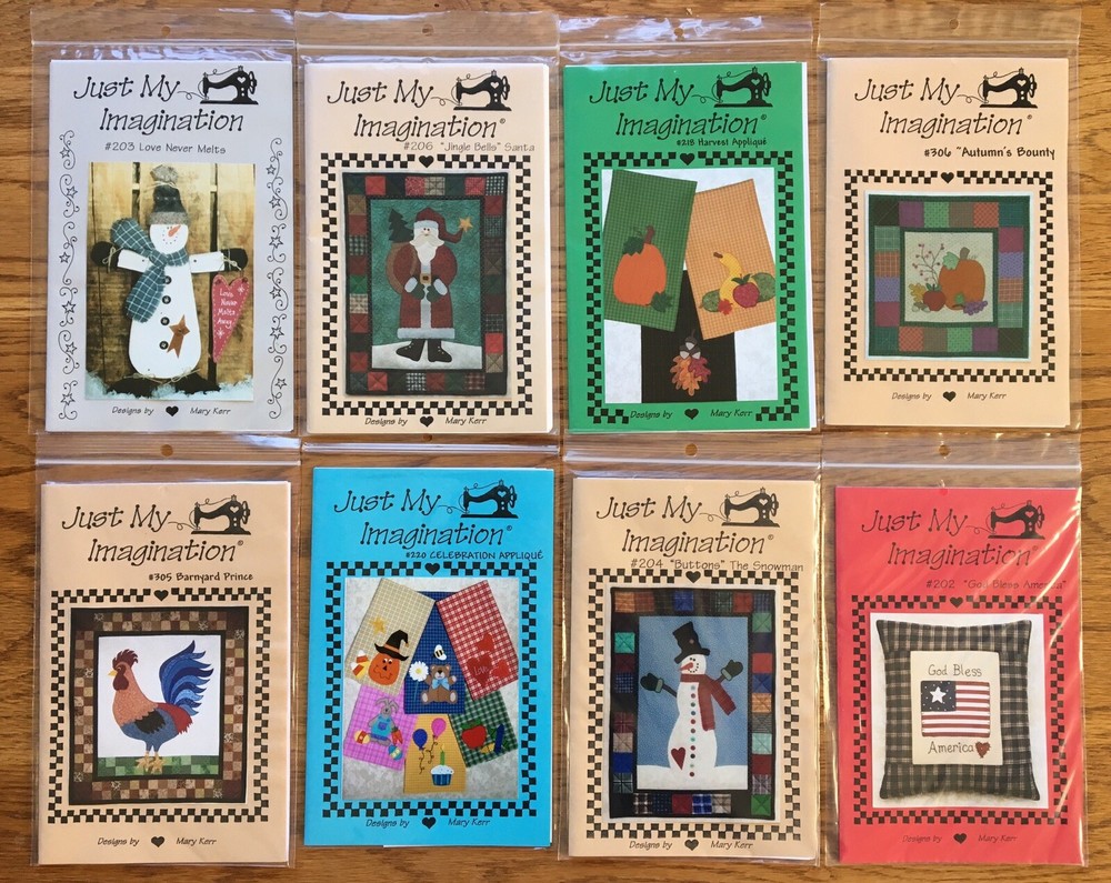 JUST MY IMAGINATION CRAFT QUILT & SEWING PATTERNS These patterns are out of print and no longer sold at retail....Hard to find! Limited Quantities Available at these low prices!!... Also available are a few original Finished Models! You Choose from Dozens of New "Old Stock" Out of Print Just My Imaginations Craft Quilt and Sewing Patterns. Patterns for Holiday Dolls & Decorations, Wall Quilts and Pillow Projects... A couple projects combine wood and fabric... A Few Patterns are for working with Primitive Felted Wools. Fun assortment...You are sure to find a few patterns for upcoming projects at these great low prices! Also available are a limited number of custom cut unfinished wood pieces and hand drilled wood buttons...to use with these patterns or for your own crafting needs...Check drop down list for choices! Combined shipping discount on purchase of more than one pattern! Your Choice! ~ Priced individually Condition: New Old Stock Patterns...A few of the envelopes are a bit shelf worn...Stock up for future projects at these low prices ... MANY NO LONGER AVAILABLE DESIGNS! CUSTOM CUT Wood Arches for Patterns #113 #107 #128 & #137 ... and a few lots of hand drilled unfinished wood buttons are Also Available... I also have some rare finished Pattern Models available for anyone not wanting to take on another project.. Items are original creation display model for my now closed pattern business. This is a one time offering of these original decorative items at this very special price...only while stock last... Most I only have one on hand. My pattern business is closed and these items will not last long. Don't miss your chance to get these patterns models or other supplies for yourself or as a gift.. NOTE: Most Items are meant to be decorative only and are not intended for use by children due to any small parts etc.. See Drop down List for available models! PLEASE NOTE: ITEMS MADE WITH THESE PATTERNS ARE INTENDED FOR DECORATIVE PURPOSES ONLY....Many designs have glued on accents and buttons and are Not for use by children due to choking hazard! **** I AM HAPPY TO DISCOUNT SHIPPING IF YOU C HOOSE MORE THAN ONE PATTERN...If you Choose Several...PLEASE MESSAGE ME Before you pay TO REQUEST A COMBINED INVOICE & GET THE BEST SHIPPING DISCOUNT **** Please Note: Payment is expected within 3 days of purchase . I Only Ship to the U.S. Please ask questions before bidding. No refunds. COMBINED SHIPPING DISCOUNT OFFERED ON PURCHASES WITHIN a 3 DAY PERIOD ONLY . PLEASE NOTE: My shipping charges do include a small handling fee...and are not negotiable! ... Thank you for looking and please Check out my other items !