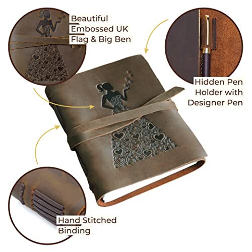 Contact Us Add to Favorite Welcome to our store Free Shipping 30 Days Return eBay Money Back Guarantee Secure Shopping Leather Bound Journal for Women, Handmade Gift Set with Lady in Heart Dress Embossed Journal and Stylish Pen, Vintage and Classic, Notebook, Sketchbook, Planner and Diary (300 Pages) (8x6") ABOUT THE PRODUCT UNIQUE GIFT SET: Handmade leather journal with beautiful Lady in Heart Dress embossed front soft cover with matching bookmark, designer pen and hidden pen holder. Presented in an eco-friendly recycled box. A timeless gift for that special someone who loves to write. PREMIUM LEATHER: Crafted with delicate yet super tough buffalo leather, including a long strap that secures the journal firmly. Our genuine leather is thicker than competitors and offers lifetime durability with lasting softness. RUSTIC DESIGN: Achieves a unique and distressed look when scratched and features decorative stitching for added charm. Coated with special natural oils that make handling a joy. Plus, it has a wonderful authentic leather smell that inspires you to write daily. QUALITY CREAM PAPER: 300 premium unlined multipurpose sheets for notes, daily plans, sketches, inspiring ideas, memories and more. Zero bleed through with fountain pens. Not refillable. PERFECT SIZE: 8x6" made to suit a wide range of writing styles. We also offer many other sizes and styles of journals, including refillable journals. There's something for everyone! (From the manufacturer) Product Description Leather Bound Journal for Women, Handmade Gift Set with Lady in Heart Dress Embossed Journal and Stylish Pen, Vintage and Classic, Notebook, Sketchbook, Planner and Diary (300 Pages) (8x6") A Beautiful Woman in a Heart Dress Journal to Treasure This genuine embossed leather journal set makes a wonderful 2020 gift for your special woman, teen girl or a lovely notebook or travel companion for you to keep and treasure. Each hand crafted buffalo leather journal is truly unique as no two are exactly the same. Practical Extras Included How many times have you wanted to write something down so you don't forget and just can't find a pen or pencil! Well the exclusive design of this journal set includes a lovely gold or silver leather clad pen which fits snugly into very useful pen holder stitched inside the journal - so your pen will always be near to hand! The complete journal comes in presentation box. Quality Leather Make a mark on the leather cover then simply rub to make it fade away. It will look different over time as it ages and becomes more rustic as you use it. You'll love the smell of this thick real leather - the soft yet sturdy crazy horse leather cover means you can always write with comfort in this notebook, even when there is no table or desk available. The smooth cream plain paper compliments the rustic brown leather and stays firmly in place with hand stitched jute binding - no glue is used. Note the paper is not refillable. Use the useful slim jute bookmark to keep your place. Sized 8" x 6", this a5 sized military stylish notebook is the perfect fit for all totes, bags or backpacks to take with you on any trip. If you're looking for something smaller, check out our Pocket Leather Journal sized 5.5" x 4.1" - search for B06ZYG8NTM. Extra Sovereign-Gear gold/leather pens can be purchased online - search for B01NAU635T. A perfect gift for mothers, daughters, nieces, girl friends or a special lady in your life - or just to treat yourself! Buy your lovely antique leather journal notebook today! For more information about the product, please visit the manufacturer's website. TERMS OF SALE Cancellation Per eBay policy regarding cancellation, we are required to accept a cancellation within 1 (one) hour of the time you placed your order. Please understand, that once we process your order, it is very difficult to reverse it, and impossible once we shipped the item. If you need to cancel after your hour expires, you will have to follow the steps laid out in the return policy, once the item arrives. Shipping We offer free shipping with standard shipping. Timeline of delivery time is 4-8 business days including the handling time. We do not offer combine shipping service. Please note, most of our products ship directly from our different suppliers across the United States. Please make sure, to provide the correct shipping address during checkout, as the address cannot be changed after checkout. Double check it to be sure. We have no way of knowing in advance, if the address is incorrect. So we will not take responsibility for any incorrect or undeliverable addresses. Return Policy Y ou have 30 days from the date you received your purchase, to return it for refund, subject to the following conditions: "The date you received your purchase" means, specifically, the date the carrier has on record that they delivered the package to your house. If you are not certain of this date, check online with the tracking number, to see what date is on record for the delivery. The item is considered "returned" on the date the carrier has on record, that they delivered the item back to our warehouse/supplier. We will not allow a refund unless the date occurs before the 30 days have elapsed, so it is important that you act promptly, or else we cannot guarantee the refund. In this case, we may refuse the returned package. ALL returns, regardless of reason, must be in the ORIGINAL packaging, UNLESS the packaging was so badly damaged in shipment that they are no longer usable for that purpose. IF THIS is the case with your shipment, we will need PHOTOS of the damaged package. You should take these photos from several different angles, BEFORE you try to open it. Return unsatisfactory products If you are not satisfied with your purchase or if you just changed your mind, you can return the product, and you must pay for return shipping, and we will also charge back the original shipping that we already paid when we shipped your item. And you must ret